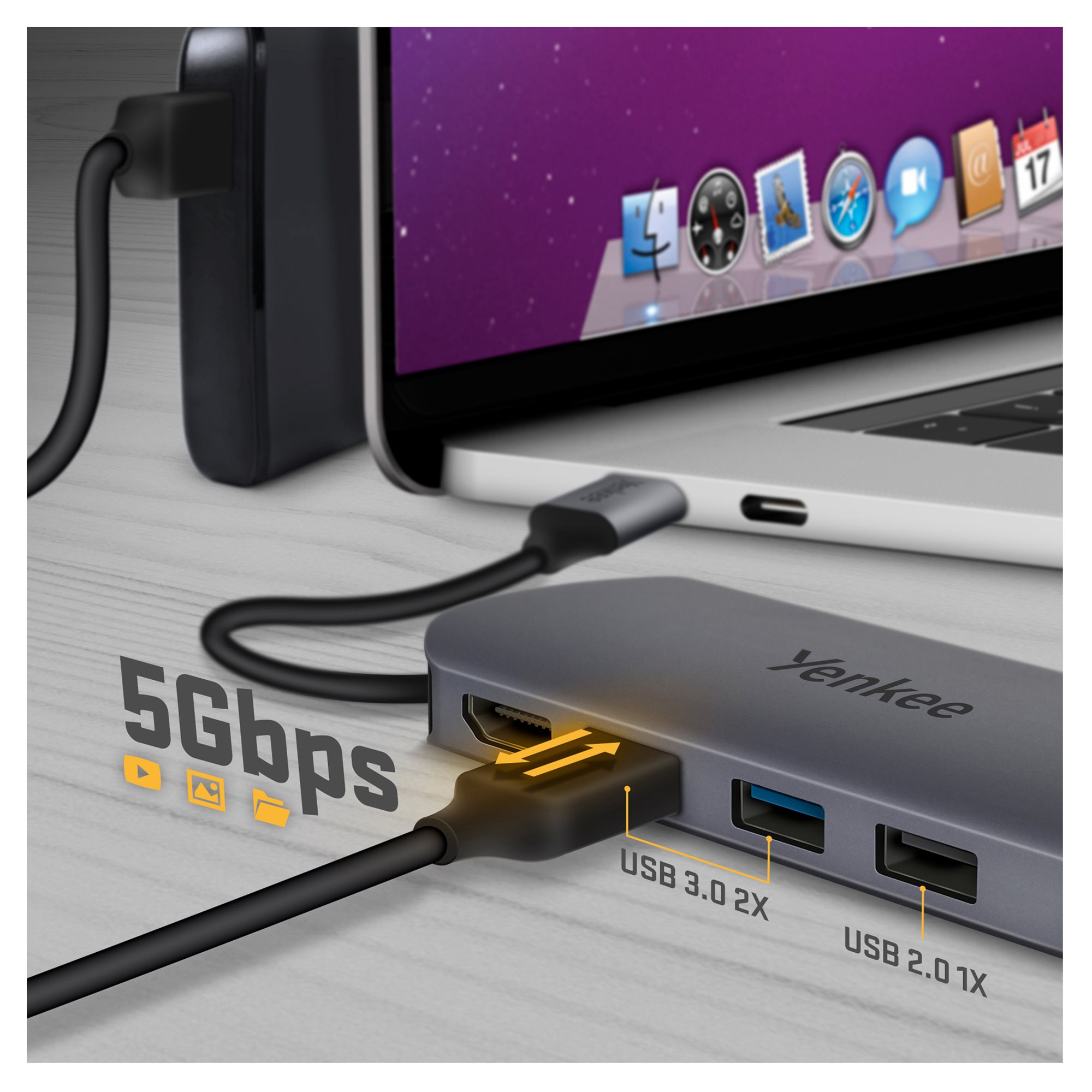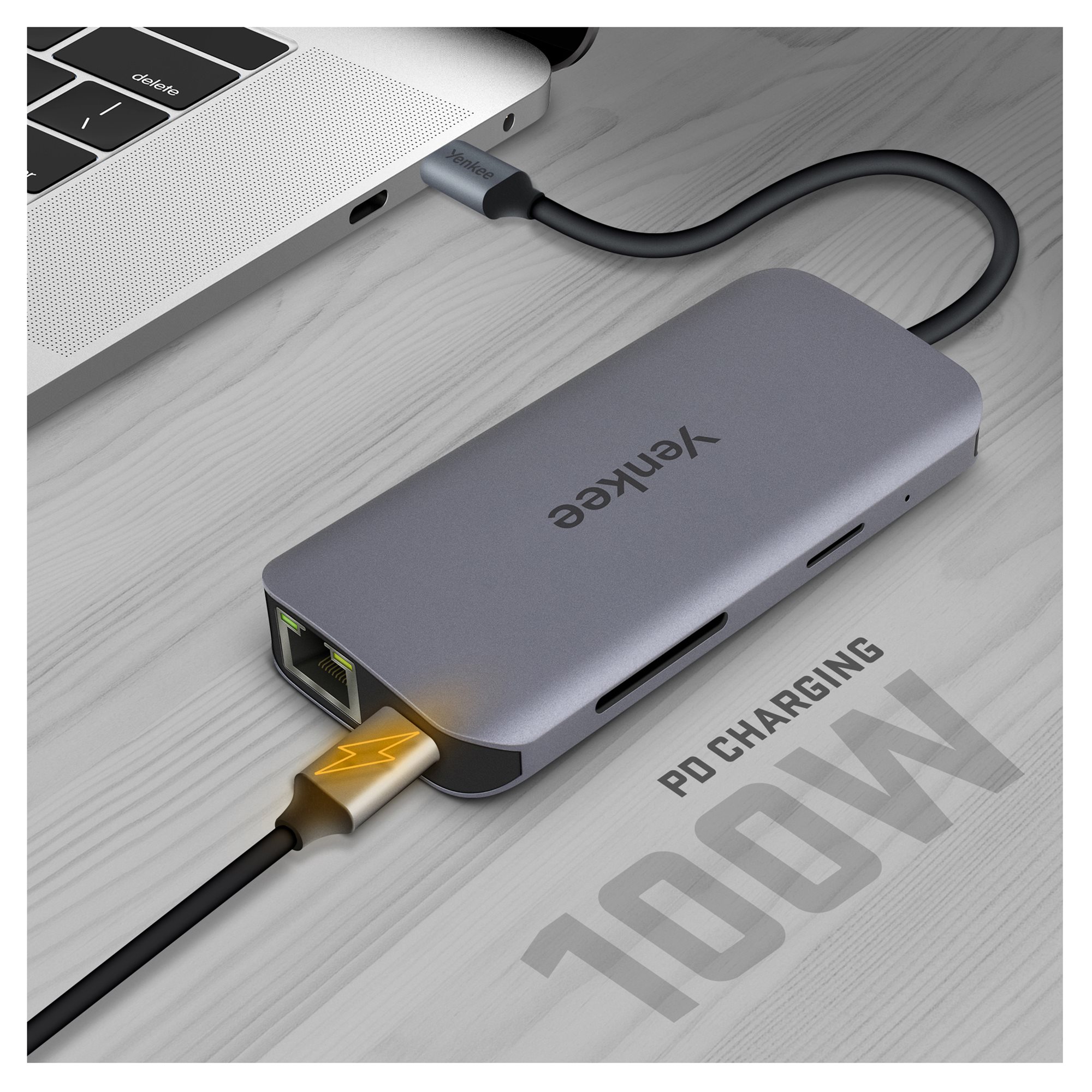 Oto uniwersalny hub USB-C, który rozszerza laptop o nawet 8 dodatkowych złączy. Mogę użyć technologii Power Delivery 3.0, aby dostarczyć do laptopa nawet 100 W mocy. W połączeniu z wysokiej klasy złączem USB-C 3.2 Gen. 2, możesz mieć pewność, że Twoje urządzenie będzie ładowane szybko, a co ważniejsze, w sposób ciągły. Wszystko to w kompaktowej, metalowej obudowie, która idealnie nadaje się do podróży.