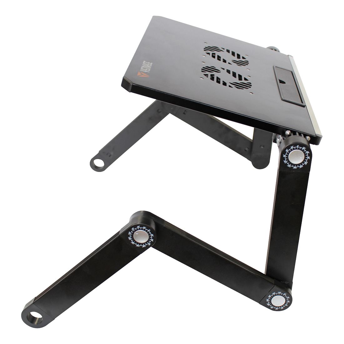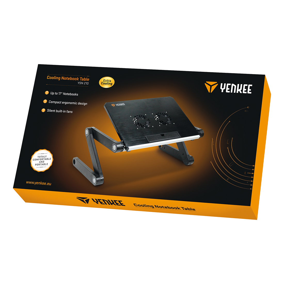 Stolik chłodzący pod notebooki o rozmiarach do 17“. Korpus aluminiowy i dwa wentylatory 80mm gwarantują dostateczne odprowadzanie ciepła i optymalne chłodzenie Twoich urządzeń. Sześć przegubów obrotowych (360°) umożliwia ustawienie notebooka w optymalnej pozycji do pracy lub zabawy, a jego wysoka stabilność jest zagwarantowana również na lekko nierównych powierzchniach.