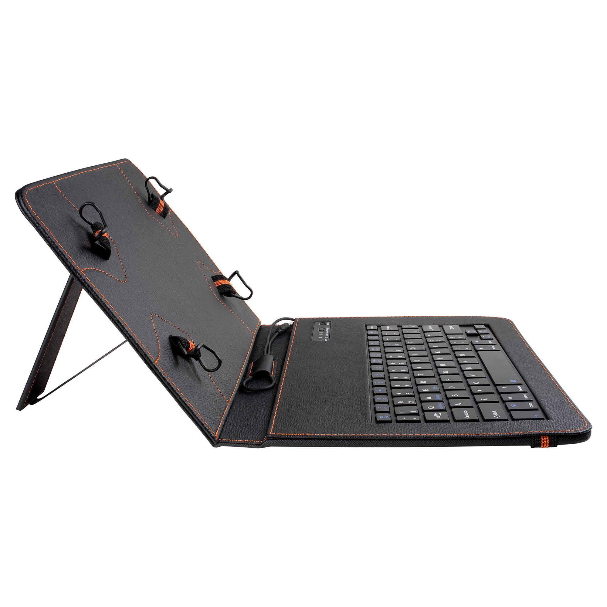 Uniwersalne etui z klawiaturą Bluetooth i podstawką do tabletów 10". Specjalna metoda mocowania w narożniku umożliwia użycie etui z szeroką gamą tabletów o rozmiarze 10".