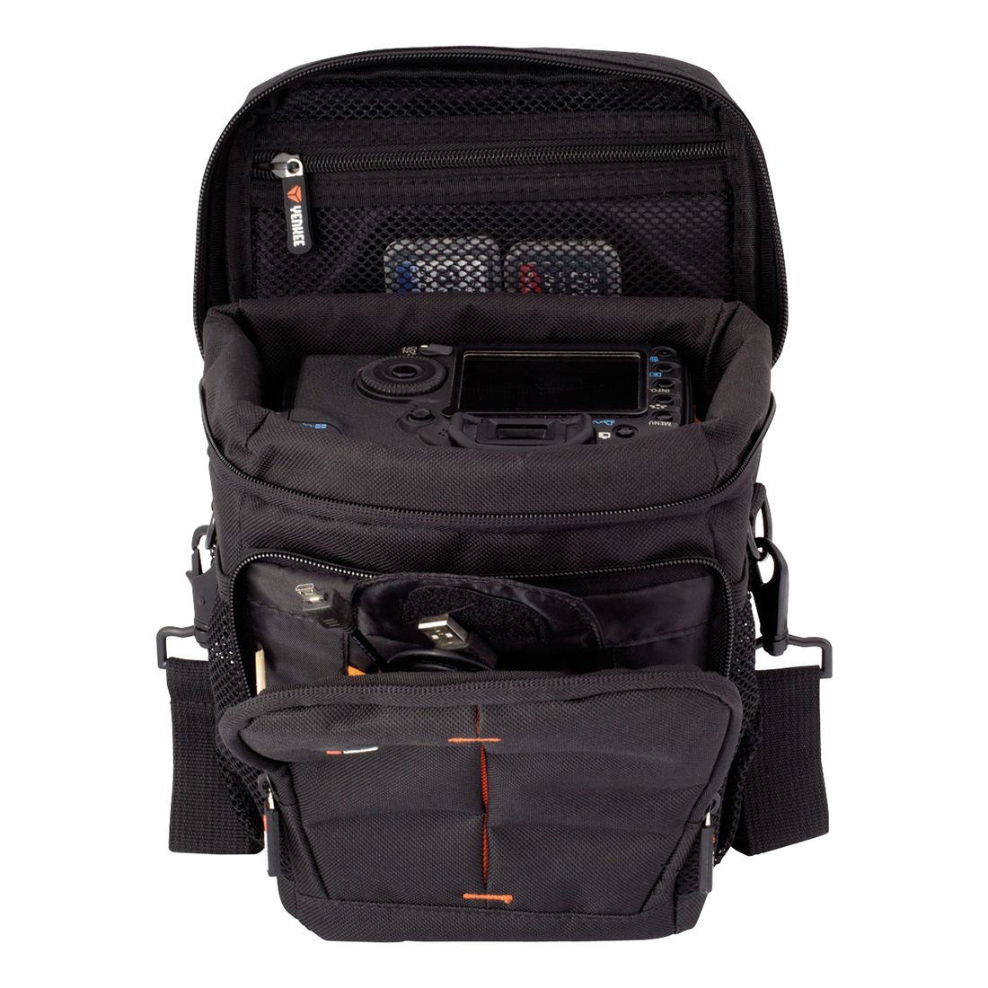 Lekki i wytrzymały futerał zapewnia doskonałą ochronę przed uszkodzeniami mechanicznymi, deszczem i pyłem dla kamery wideo. Gumowany spód zapewnia maksymalną ochronę przed uderzeniami od spodu.