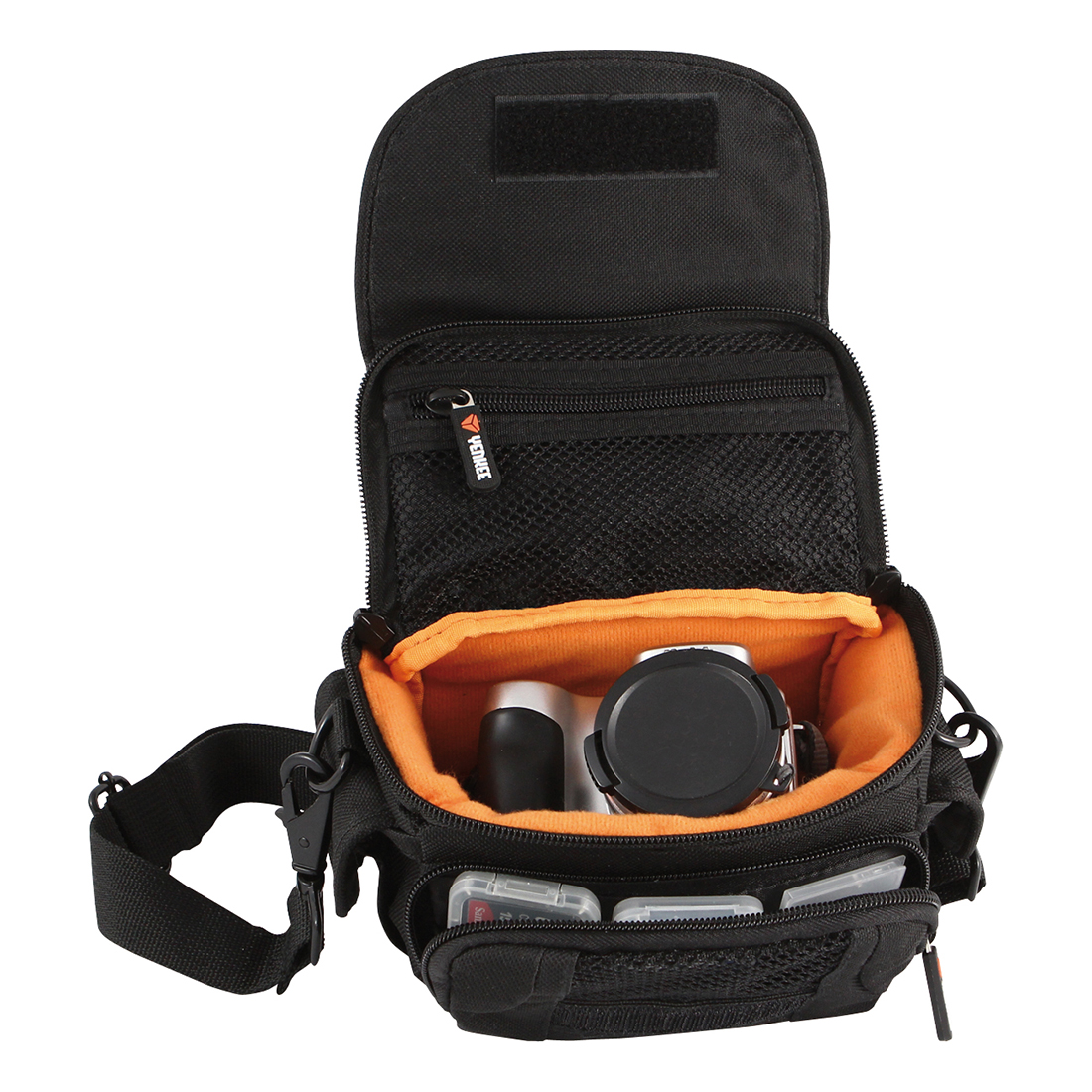 Lekki i wytrzymały futerał zapewnia doskonałą ochronę przed uszkodzeniami mechanicznymi, deszczem i pyłem dla kamery wideo. Gumowany spód zapewnia maksymalną ochronę przed uderzeniami od spodu.