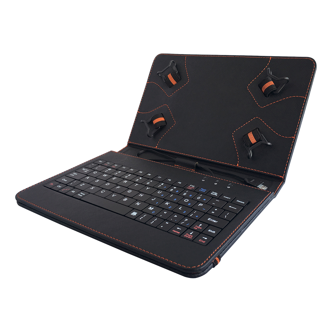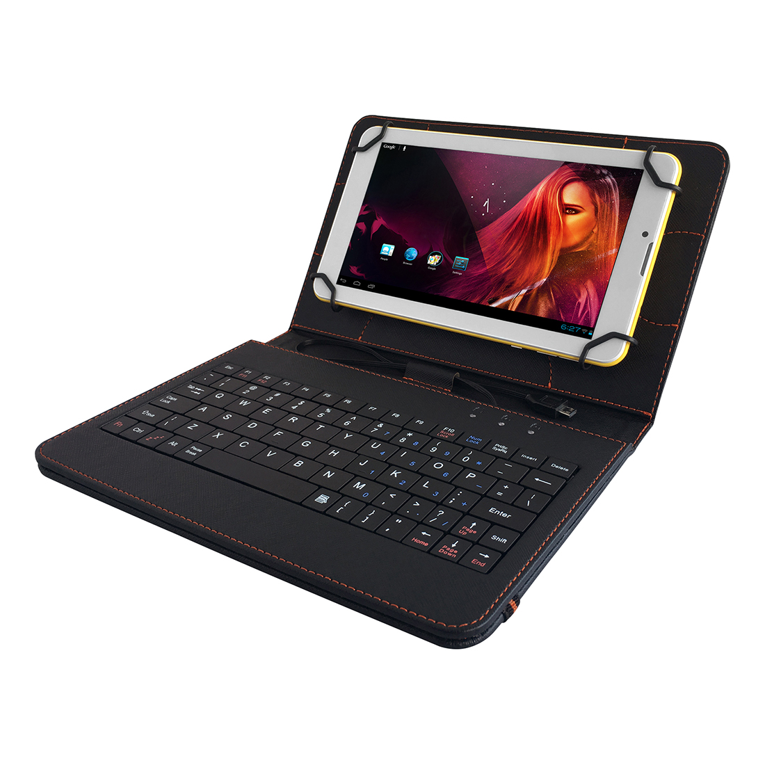 Uniwersalne ochronne etui z klawiaturą QWERTY i stojakiem do tabletów 7" i 8". Nowatorski system narożnikowania mocowania zapewnia bezpieczne przenoszenie i zapobiega wypadaniu tabletu z etui. Klawiatura jest kompatybilna wyłącznie z urządzeniami wyposażonymi w port USB OTG.