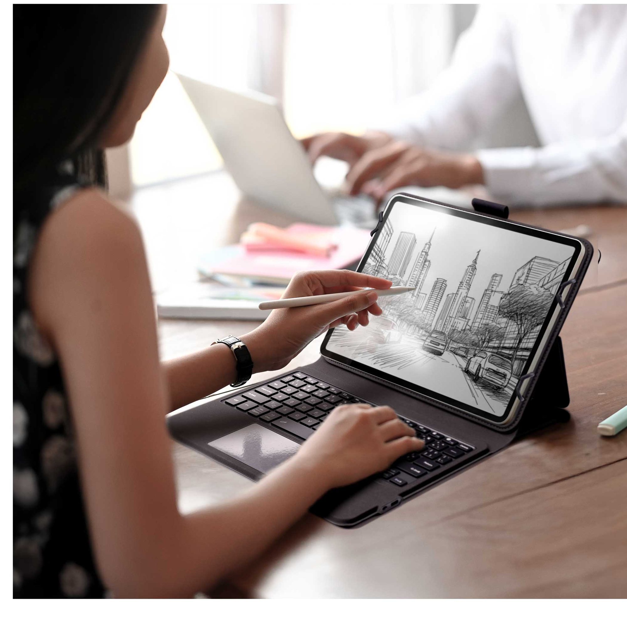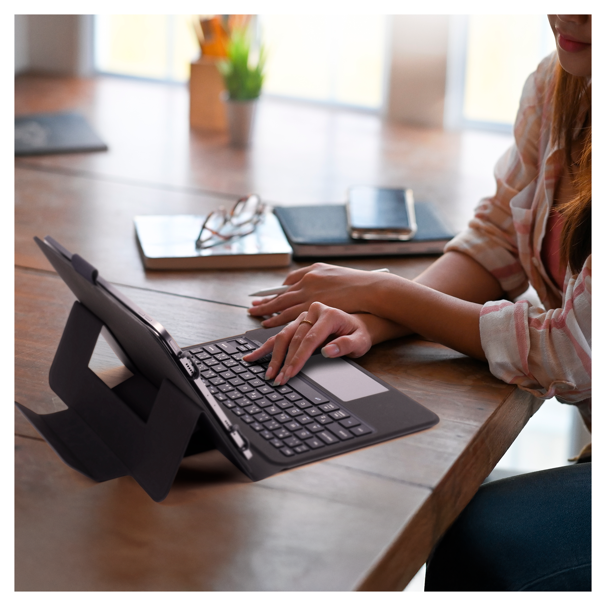 Połączenie etui, stojaka i klawiatury sprawia, że korzystanie z tabletu jest wygodniejsze zarówno w domu, jak i w pracy.