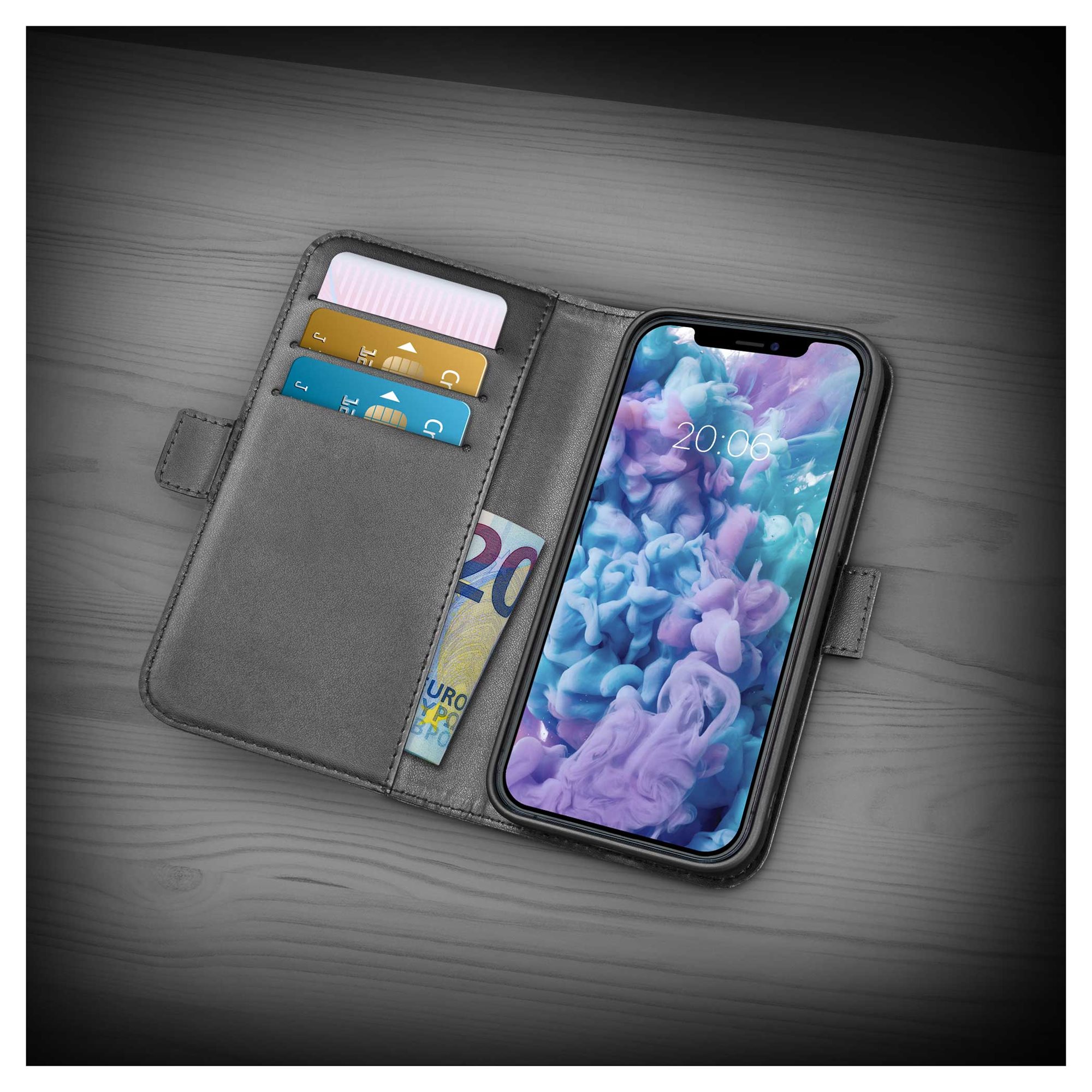 Eleganckie skórzane wzornictwo przywołuje na myśl portfel dzięki wbudowanym kieszeniom na karty i jednej dużej kieszeni na banknoty.
