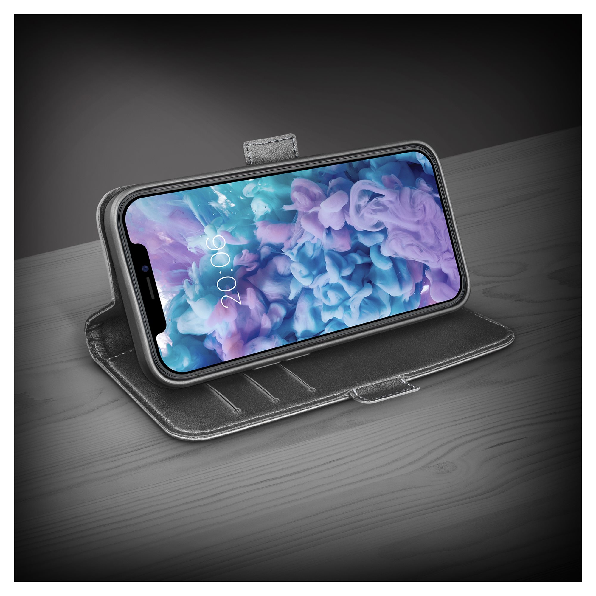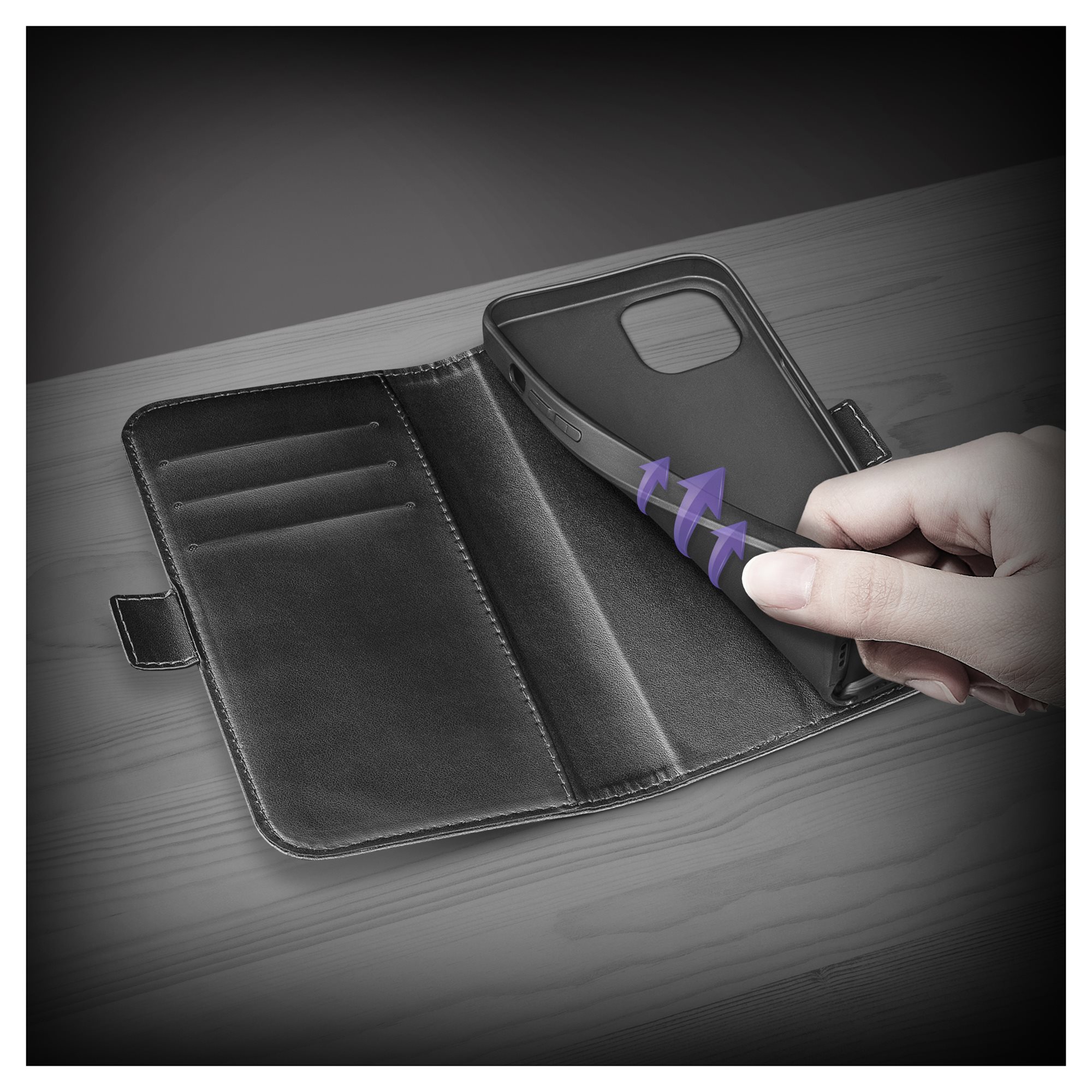 Wyświetlacz telefonu jest chroniony przed nieoczekiwanymi zarysowaniami przez solidne etui z klapką, które można zablokować za pomocą bocznego magnesu.