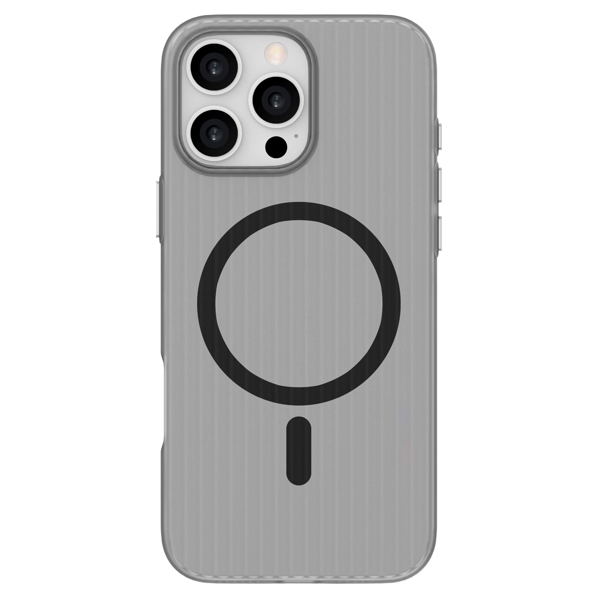 Eleganckie etui na telefon komórkowy kompatybilne z Magsafe zapewnia kompleksową ochronę telefonu. Specjalne radełkowanie na bokach etui zapewnia zwiększony komfort chwytu.