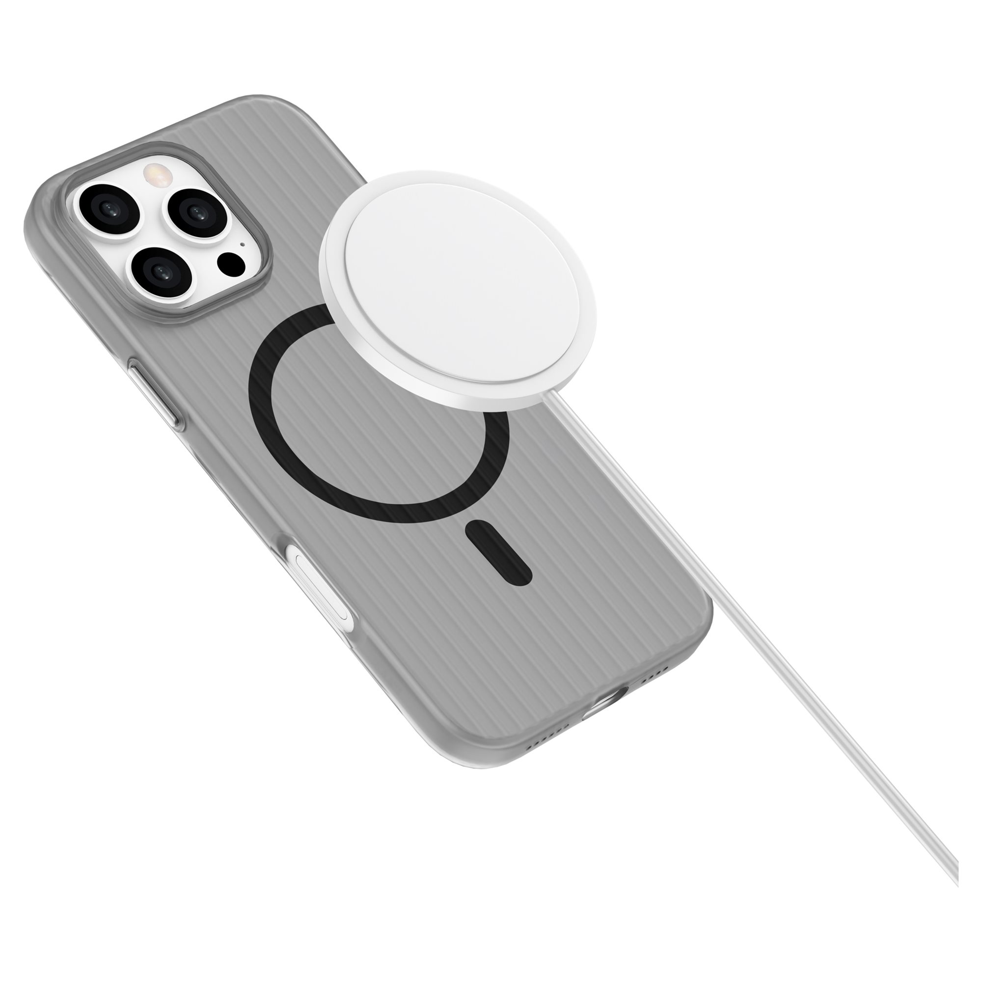 Eleganckie etui na telefon komórkowy kompatybilne z Magsafe zapewnia kompleksową ochronę telefonu. Specjalne radełkowanie na bokach etui zapewnia zwiększony komfort chwytu.