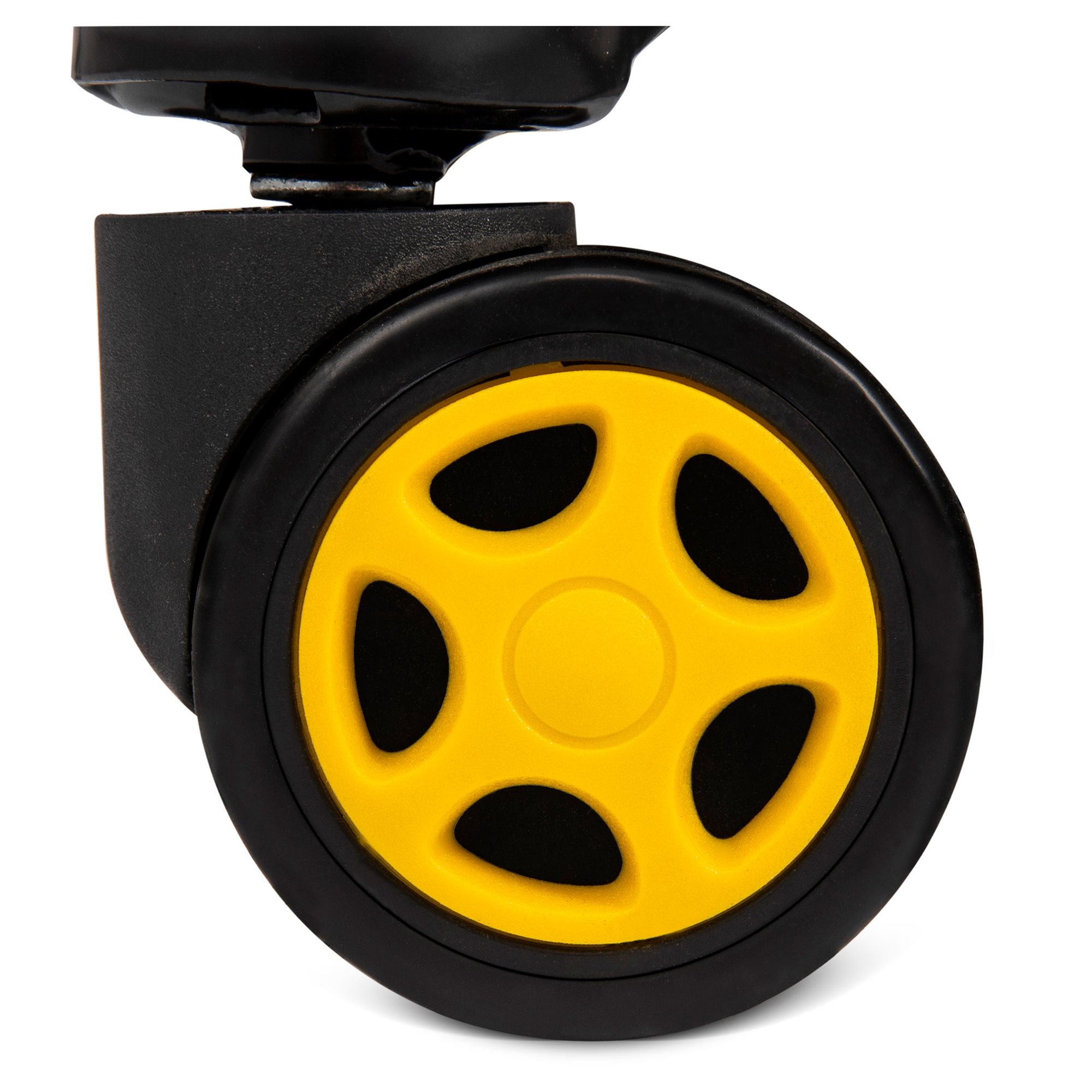 Cisza i wytrzymałość w jednym. Dzięki 60-milimetrowym kółkom nylonowym pokrytym miękkim poliuretanem mój ruch jest cichy i nadaje się do wszystkich powierzchni. Jednocześnie dzięki mojej solidnej konstrukcji wytrzymam obciążenie do 150 kilogramów.