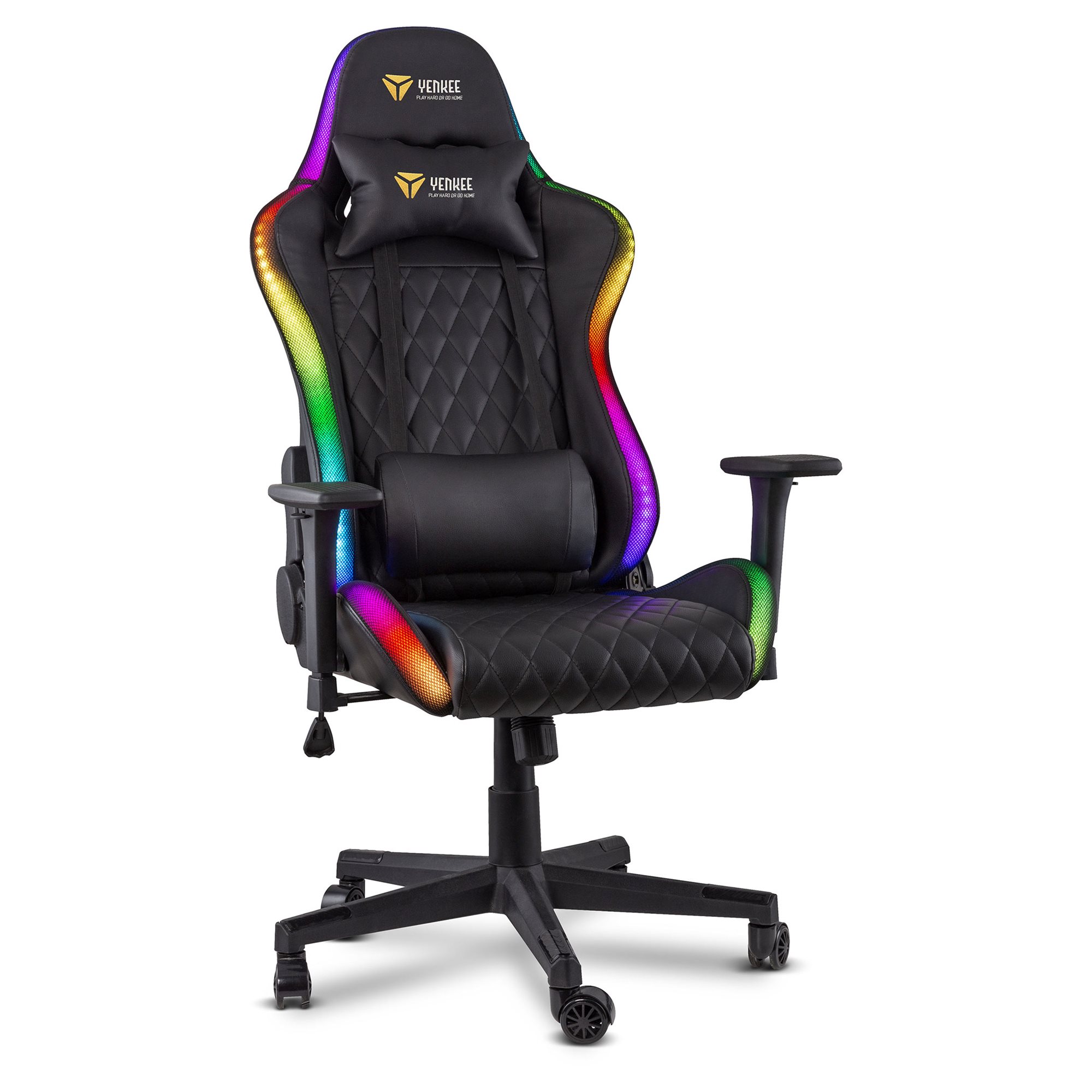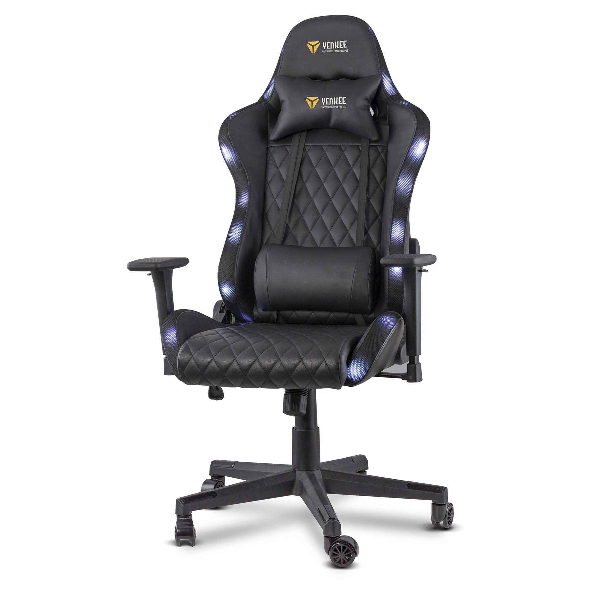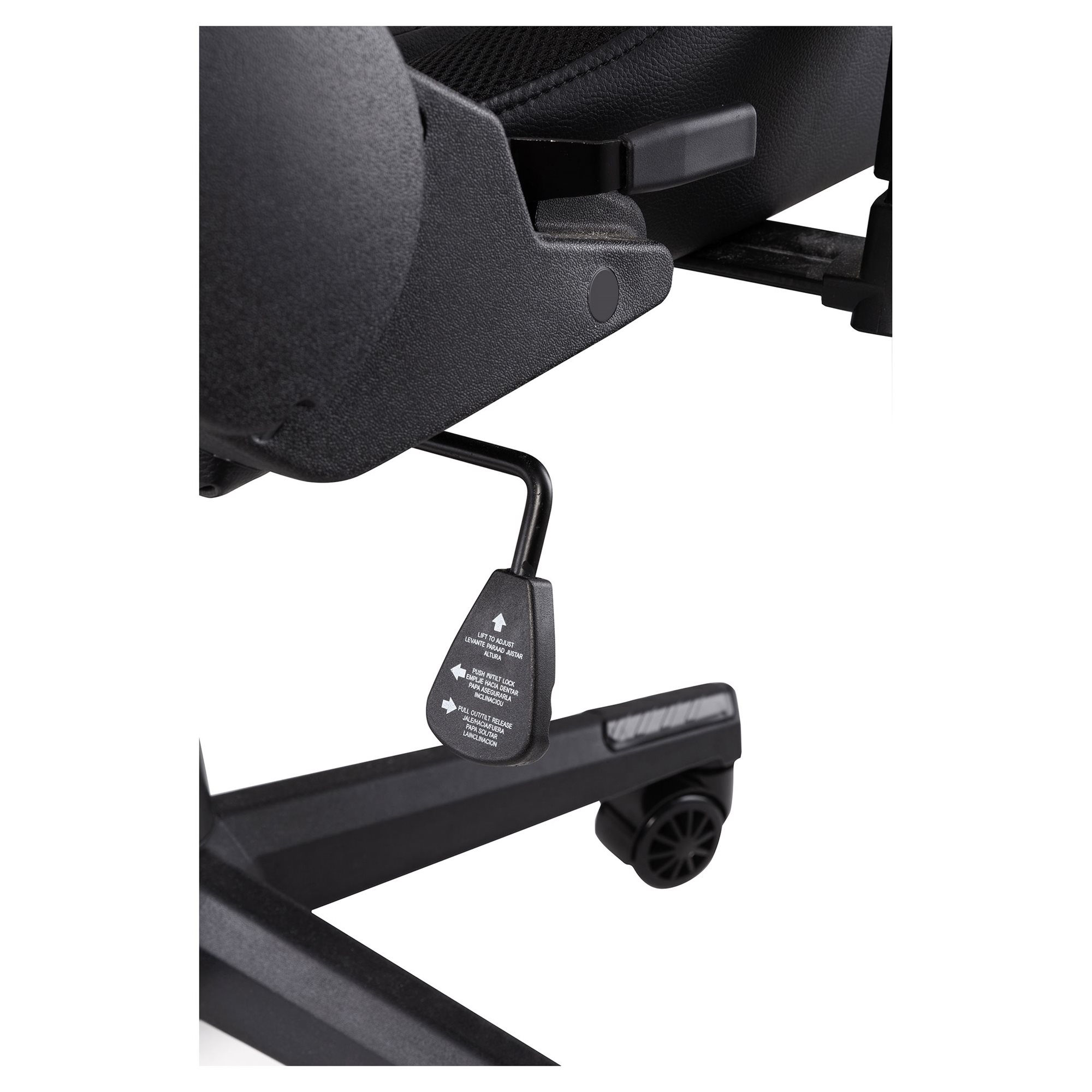Mogę się pochwalić solidną stalowa konstrukcją z nośnością do 150 kg, ale dzięki 60 mm nylonowym kółkom z poliuretanową powłoką kroczę niemal bezszelestnie. Wspomniane kółka ponadto przeniosą mój ciężar na dowolną powierzchnię, więc nie musisz się obawiać, że podłoga stanie się kroniką pełną bruzd po stoczonych bitwach. Do tego mam gazowy system podnoszenia klasy bezpieczeństwa 4, więc zagwarantuję ci świetny widok, nawet gdy będziesz w pełnym rynsztunku. Centrali elektrycznej na kółkach jednak ze sobą na front zabierać nie musisz – moje oświetlenie jest zasilane przez USB, przez standardowy adapter lub powerbank. Od ciebie zależy, co wybierzesz, źródło możesz wybrać osobno.