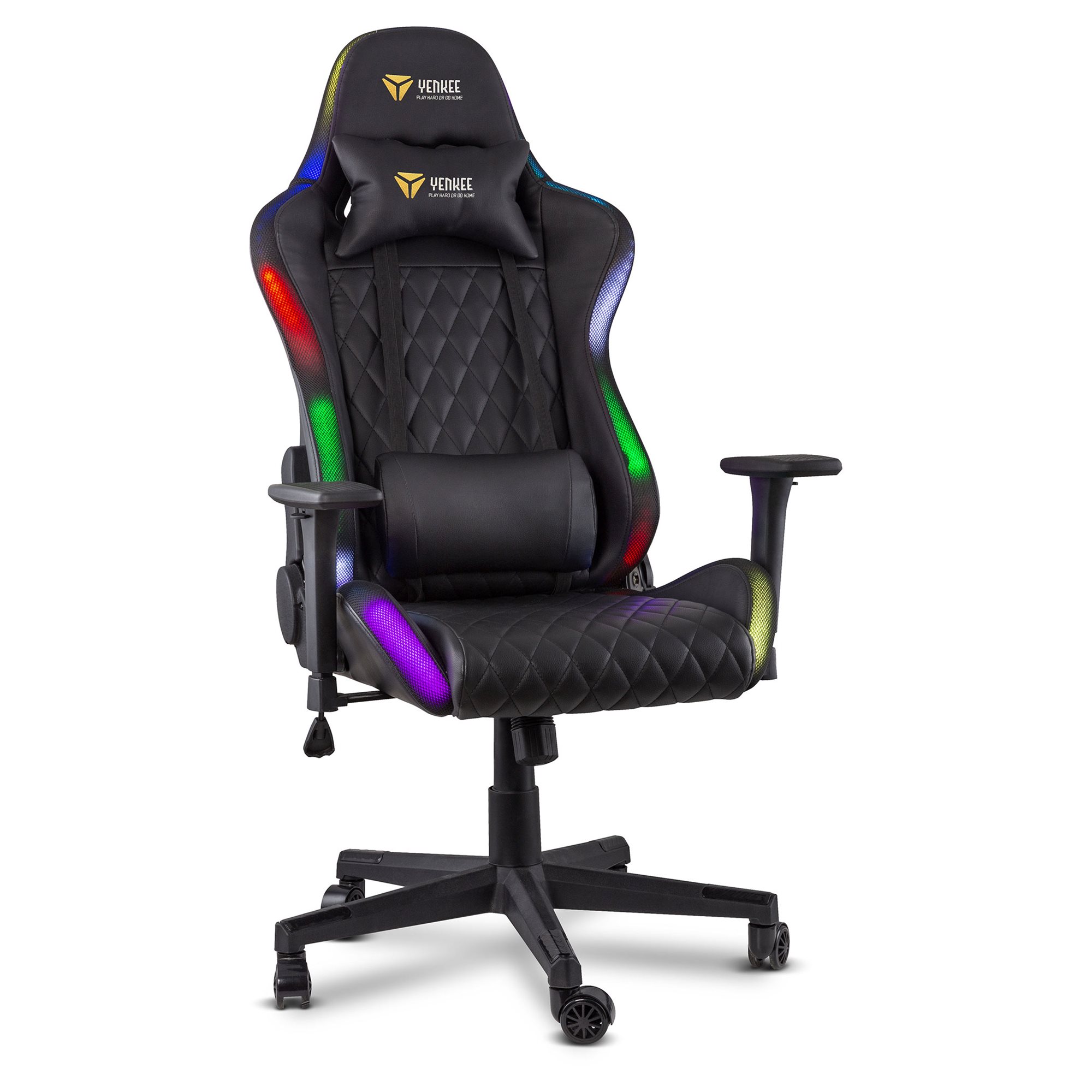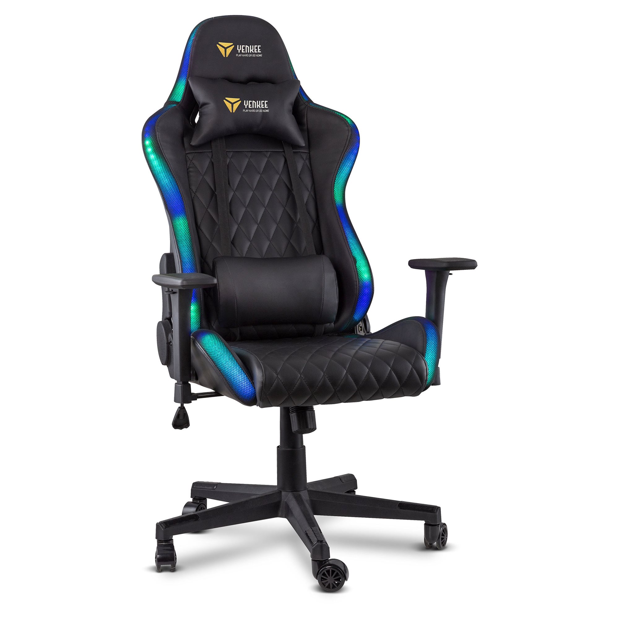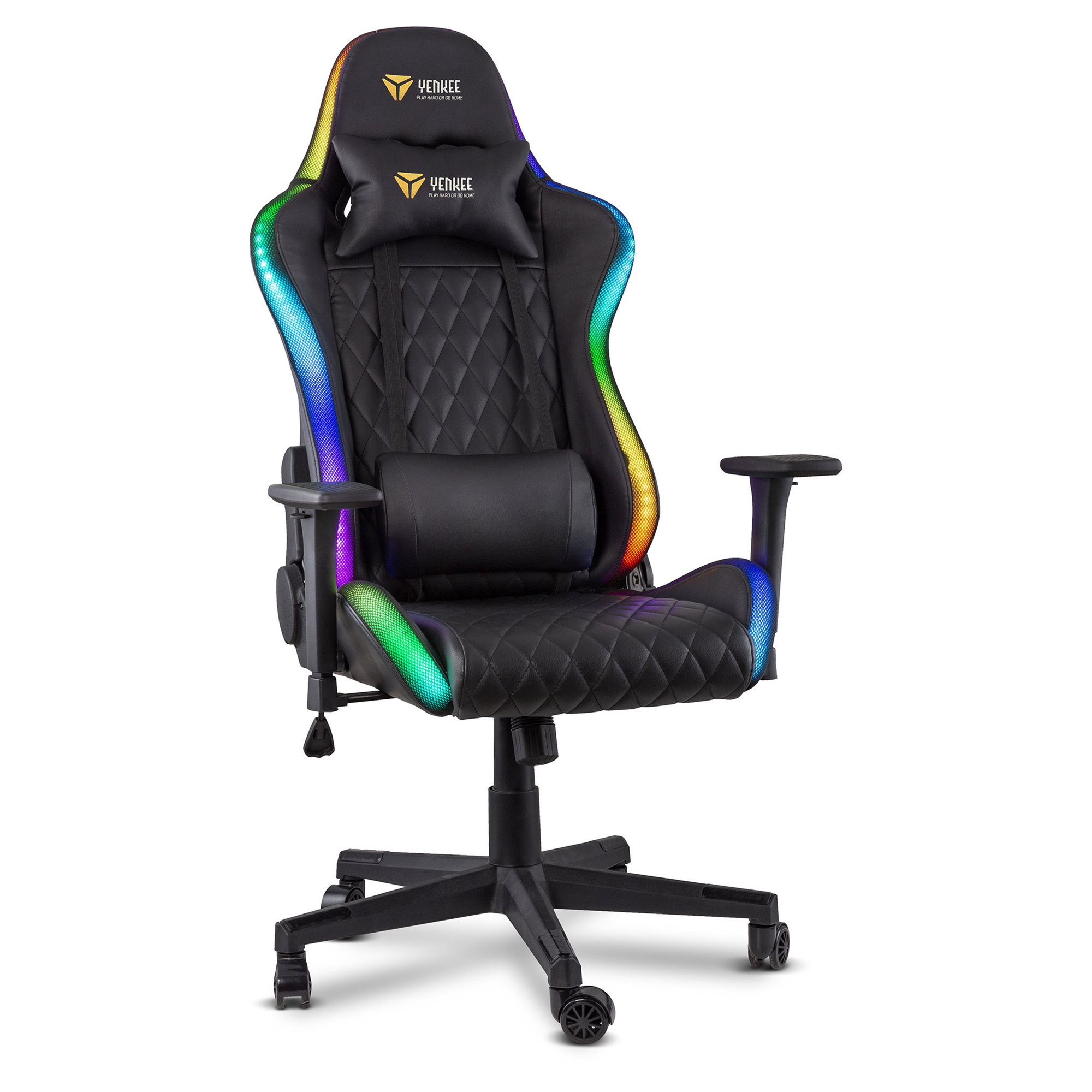 Mogę się pochwalić solidną stalowa konstrukcją z nośnością do 150 kg, ale dzięki 60 mm nylonowym kółkom z poliuretanową powłoką kroczę niemal bezszelestnie. Wspomniane kółka ponadto przeniosą mój ciężar na dowolną powierzchnię, więc nie musisz się obawiać, że podłoga stanie się kroniką pełną bruzd po stoczonych bitwach. Do tego mam gazowy system podnoszenia klasy bezpieczeństwa 4, więc zagwarantuję ci świetny widok, nawet gdy będziesz w pełnym rynsztunku. Centrali elektrycznej na kółkach jednak ze sobą na front zabierać nie musisz – moje oświetlenie jest zasilane przez USB, przez standardowy adapter lub powerbank. Od ciebie zależy, co wybierzesz, źródło możesz wybrać osobno.