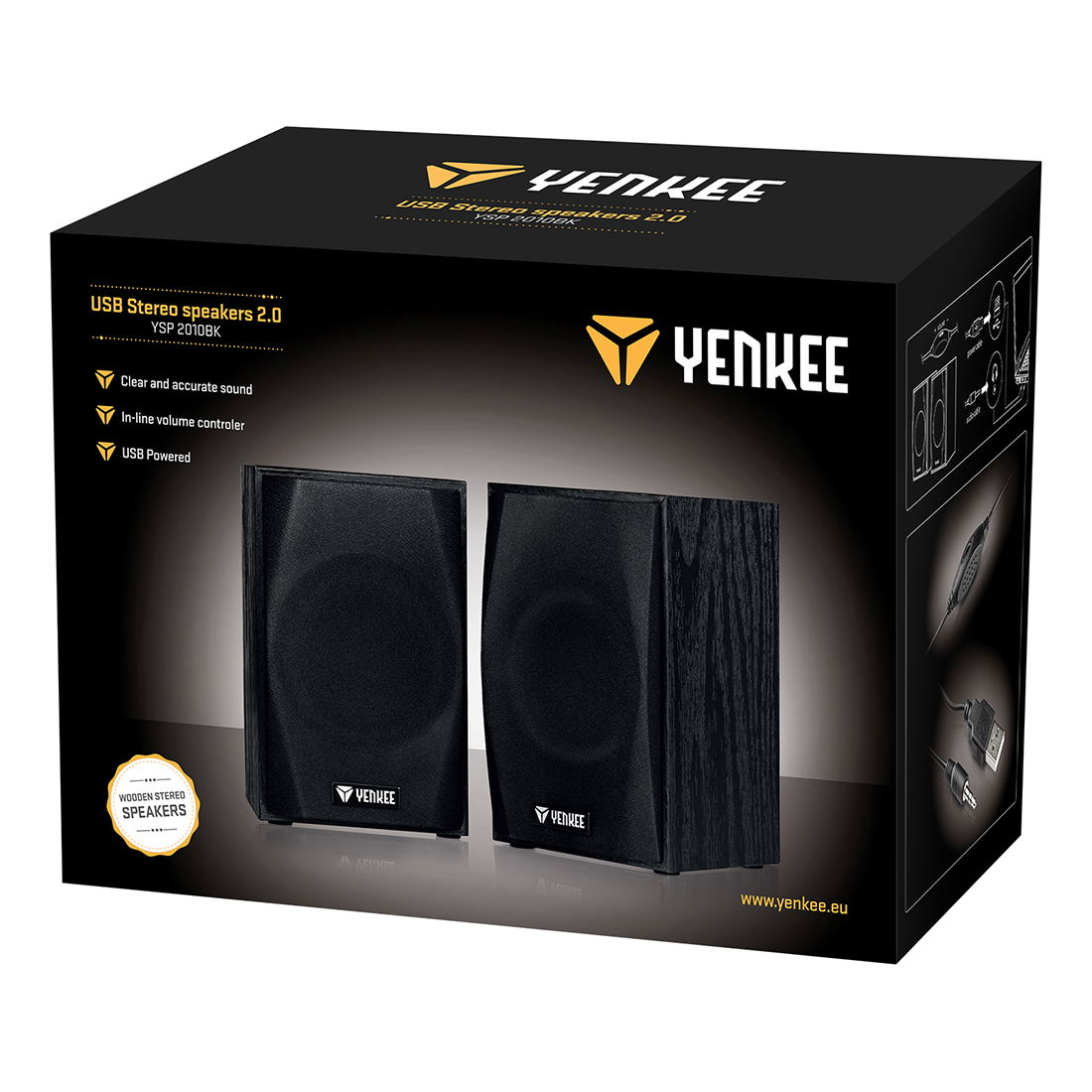 Drewniane głośniki stereo zasilane z portu USB z czystym i precyzyjnym dźwiękiem podniosą jakość dźwięku twojego notebooka lub PC.