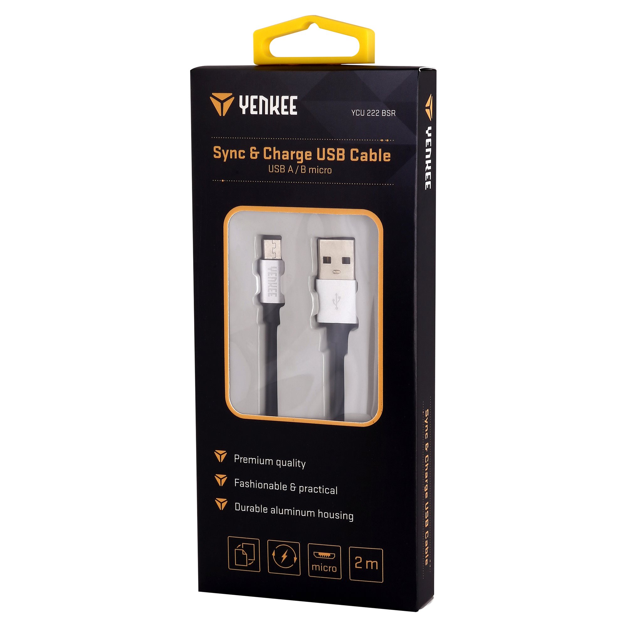 Kabel micro USB A / B do synchronizacji i ładowania, wykonany z przyjemnego w dotyku i wytrzymałego materiału.