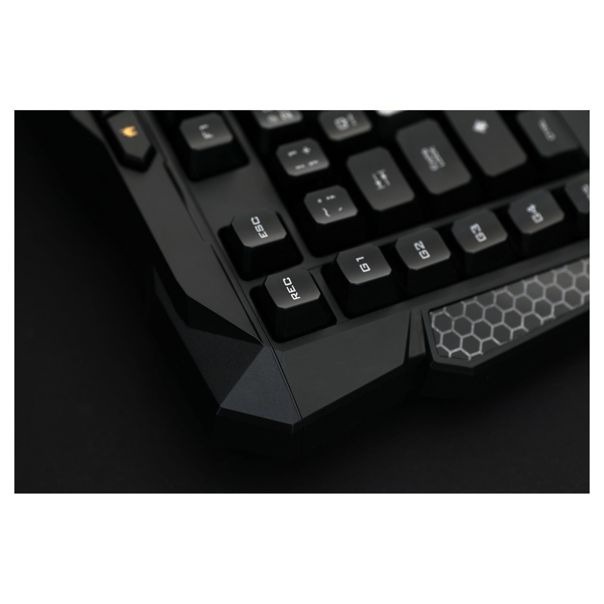Ergonomicznie wycięte klawisze zapewnią mniejszą ilość przypadkowych kliknięć, a w połączeniu z szerokim klawiszem spacji staję się najlepszym narzędziem do długiego grania bez przerw. Funkcja Antighosting zapewni bezkonfliktowe wciskanie większej ilości klawiszy naraz, a Win-lock umożliwi dezaktywację klawisza Windows i zapobiegnięcie przypadkowemu wywołani ekranu Windows podczas grania. Możesz na mnie nawet nastawić makro przy pomocy jednego klawisza REC. Mój przemyślany software z trzema profilami w przeciwieństwie do zwykłego nagrywania makr przez klawiaturę zapewni szczegółowe ustawienie wykonanych uderzeń i całych makr. Możesz je następnie stosować do większości moich klawiszy. Ze mną żadna bitwa nie będzie już problemem.