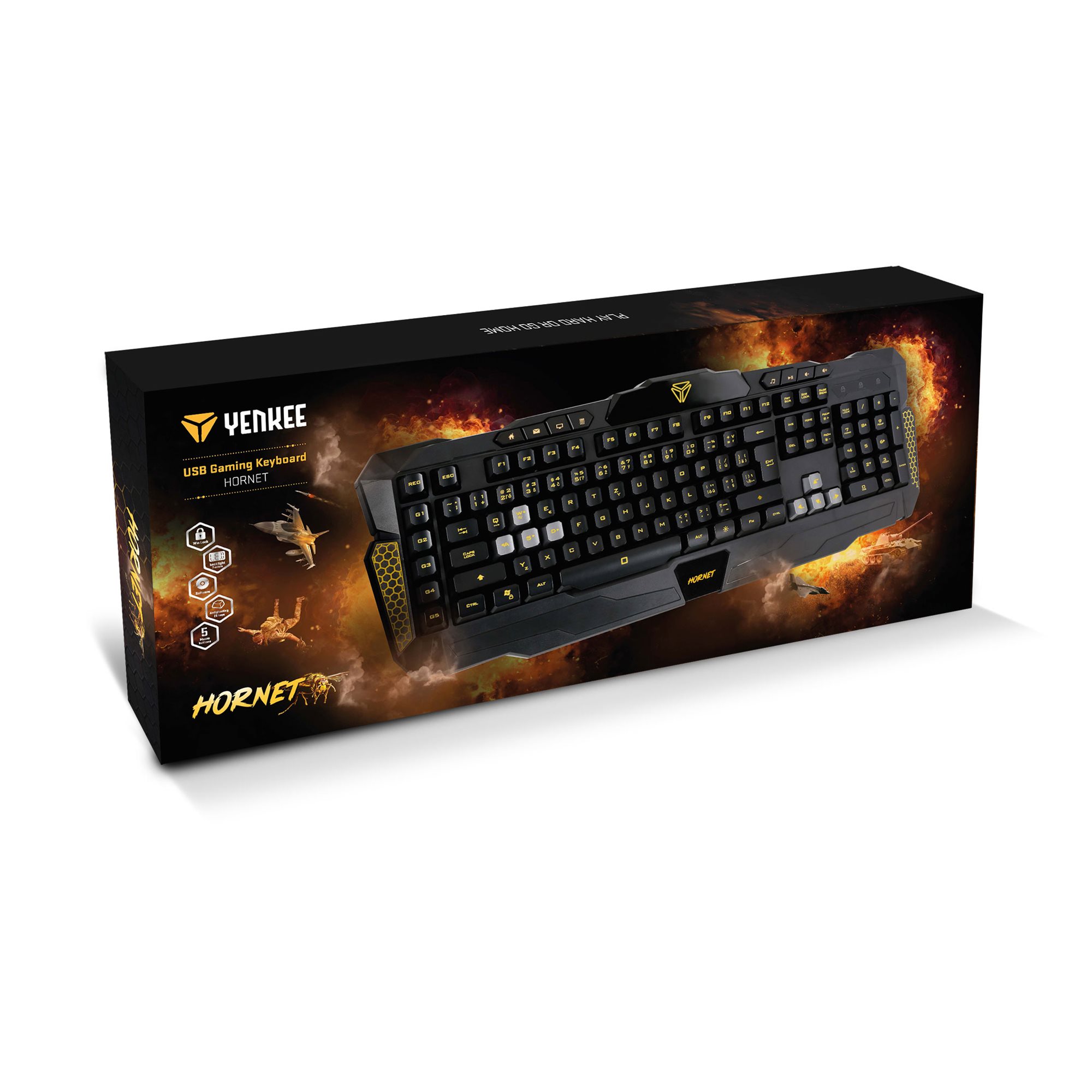 Jestem Twoją wymarzoną klawiaturą. Jestem klawiatura Hornet. Nie zawiodę Cię w żadnej sytuacji. Mój korpus jest przetkany metalową konstrukcją gwarantującą świetną wytrzymałość i świetne usztywnienie. Możesz też ustawić moją pozycję dokładnie tak, jak potrzebujesz. Mam bowiem aż trzy poziomy regulacji wysokości.