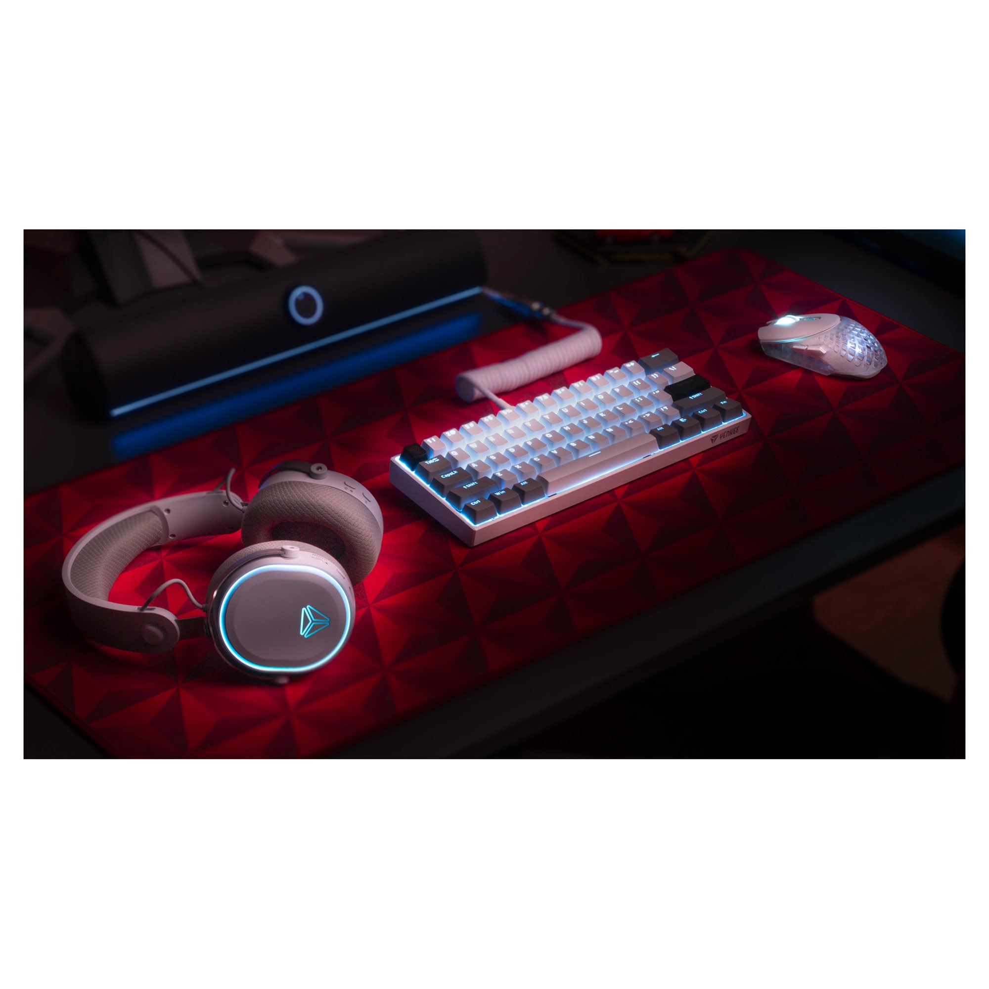 Pomimo niewielkich rozmiarów wyróżniam się wytrzymałością. Dzięki wysokiej jakości klawiszom Double-Shot PBT nie zużyję się z byle powodu i nawet po setkach godzin spędzonych na graniu będę wciąż jak nowa. W dodatku klawisze możesz dowolnie zmieniać dzięki ich trójkolorowej kombinacji. Kompaktowość potwierdza fakt, że mam zaledwie 61% rozmiarów standardowej klawiatury.