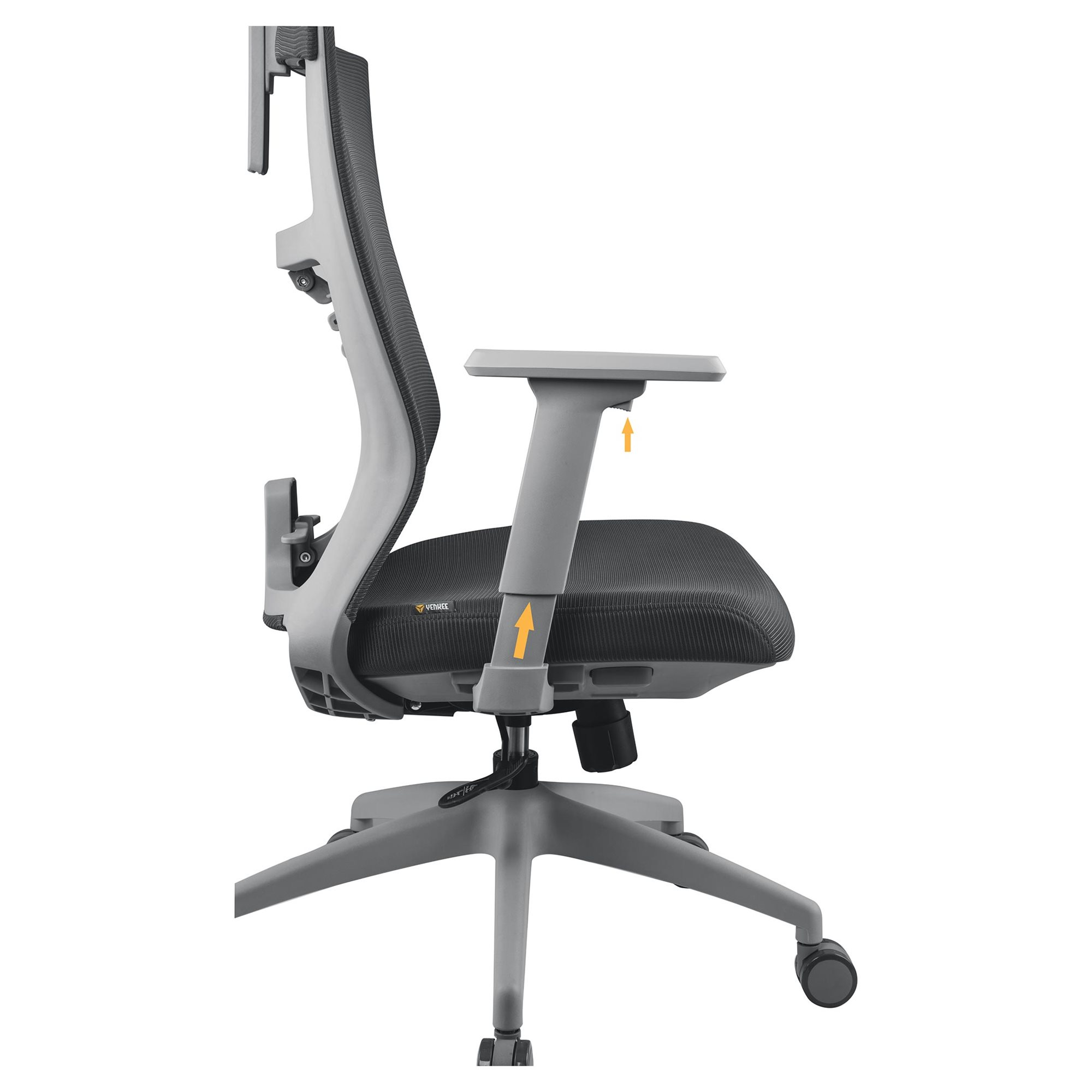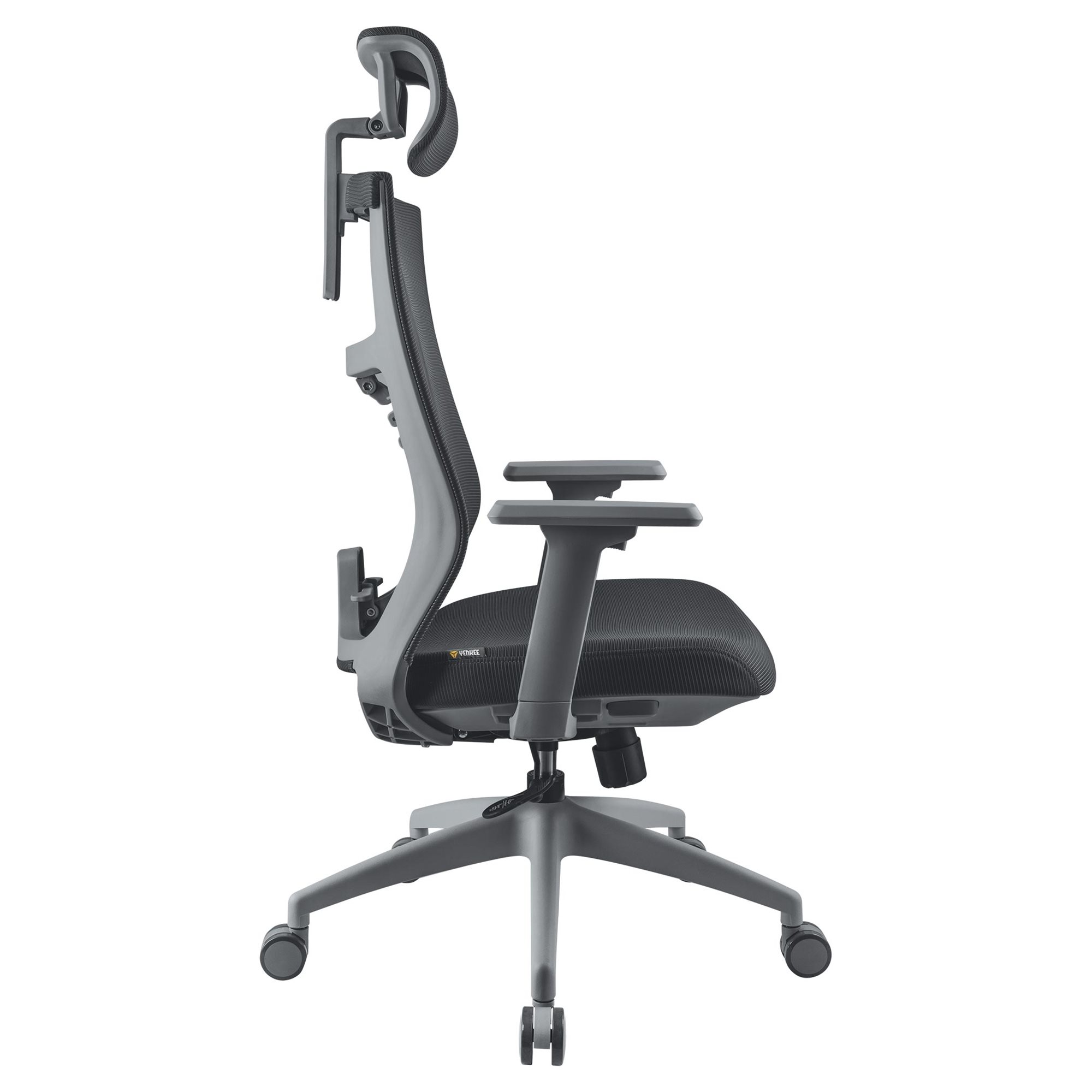 Krzesło biurowe YENKEE FISHBONE posiada synchroniczny mechanizm odchylania, dzięki czemu stale utrzymuje właściwy kąt między oparciem a siedziskiem. Blokada przechyłu i wysokości jest sterowana za pomocą dźwigni, a sztywność wychylenia za pomocą regulatora obrotowego. Nie ma znaczenia, ile masz wzrostu, czy jesteś mężczyzną czy kobietą. Dzięki krzesłu biurowemu FISHBONE firmy Yenkee możesz zawsze wygodnie ustawić pozycję siedzącą, która jest najlepsza dla Twojego ciała i kręgosłupa.