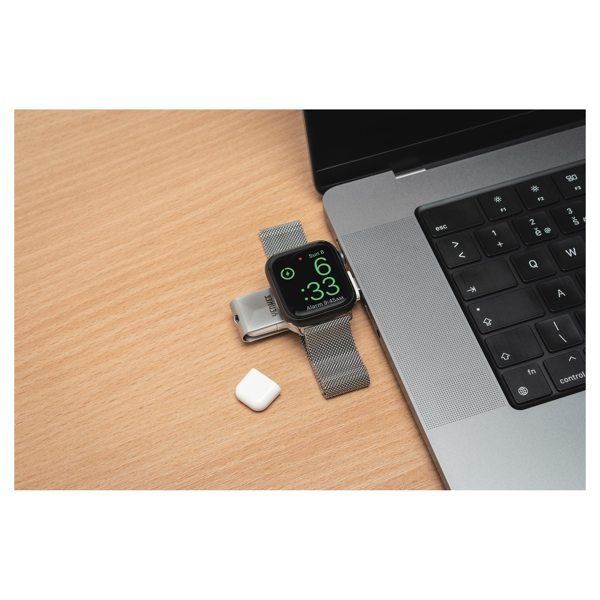 Podłącz YENKEE YAC 5001 Apple Watch Charger do wolnego portu USB-C lub USB-A w urządzeniu i umieść zegarek na magnetycznej powierzchni ładowarki. Ładowanie rozpocznie się automatycznie. Możesz wygodnie monitorować postęp ładowania na wyświetlaczu zegarka, a także powiadomienia i inne funkcje skonfigurowane na zegarku. Ładowarka ma gustowny biały design pasujący do urządzeń Apple.