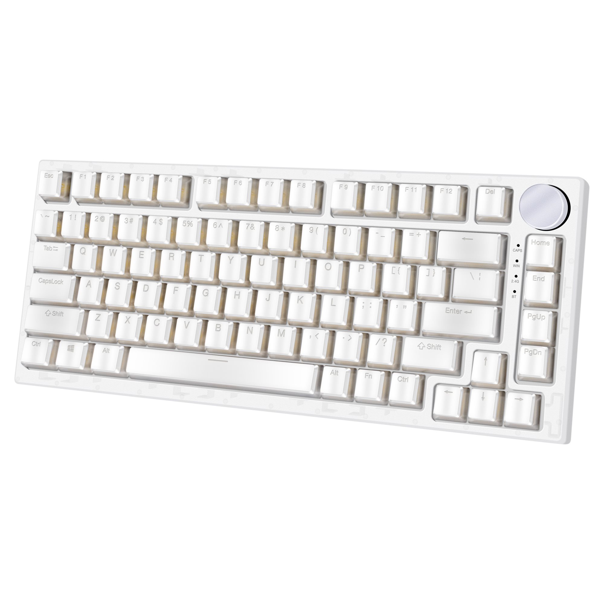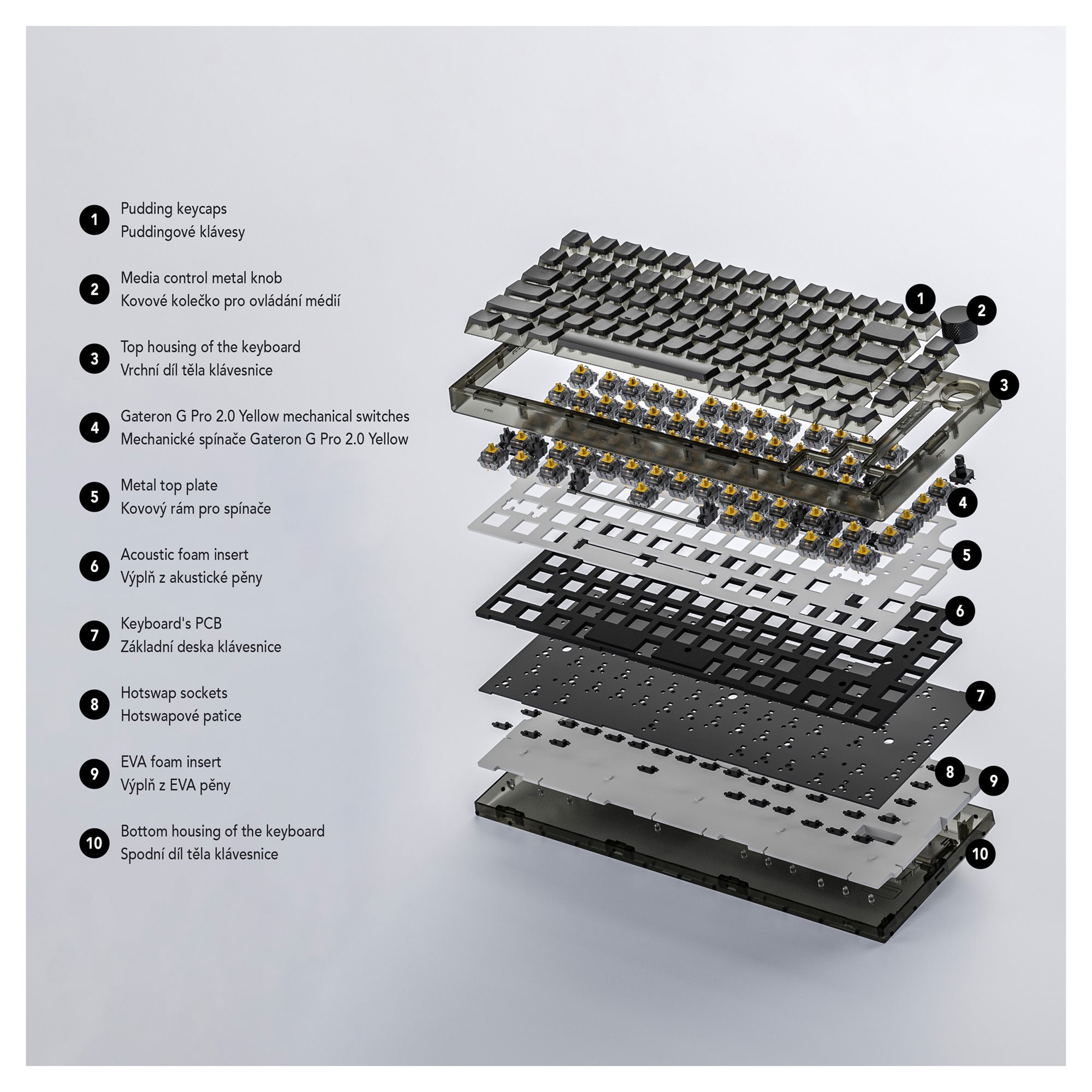 Poznaj uosobienie designu oszczędzającego miejsce - klawiaturę ODYSSEY z kompaktowym układem 75% korpusu. Ta klawiatura oferuje wydajność bez kompromisów i przesuwa granice funkcjonalności, jednocześnie oszczędzając cenne miejsce na biurku. Zaprojektowana, aby oferować wszystkie niezbędne funkcje klawiatury w mniejszej obudowie, ODYSSEY doskonale pasuje do nowoczesnych miejsc pracy, zakwaterowania dla studentów i kreatywnych przestrzeni. Ale innowacja to nie tylko rozmiar - przygotuj się na nieoczekiwane. Prawy górny róg jest ozdobiony starannie wykonanym metalowym sterownikiem, przywołującą poczucie wyrafinowanego smaku. Sterownik ten jest jednak czymś więcej niż tylko elementem wizualnym; umożliwia on również natychmiastowe sterowanie dźwiękiem. Sterowanie głośnością i odtwarzaniem/pauzą wzbogaca wrażenia multimedialne; wystarczy przekręcić lub nacisnąć ten element sterujący, aby sterować dźwiękiem. ODYSSEY nie tylko przyczynia się do porządku w miejscu pracy, ale także wnosi odrobinę elegancji, aby pobudzić ciekawość i na nowo zdefiniować funkcjonalność.