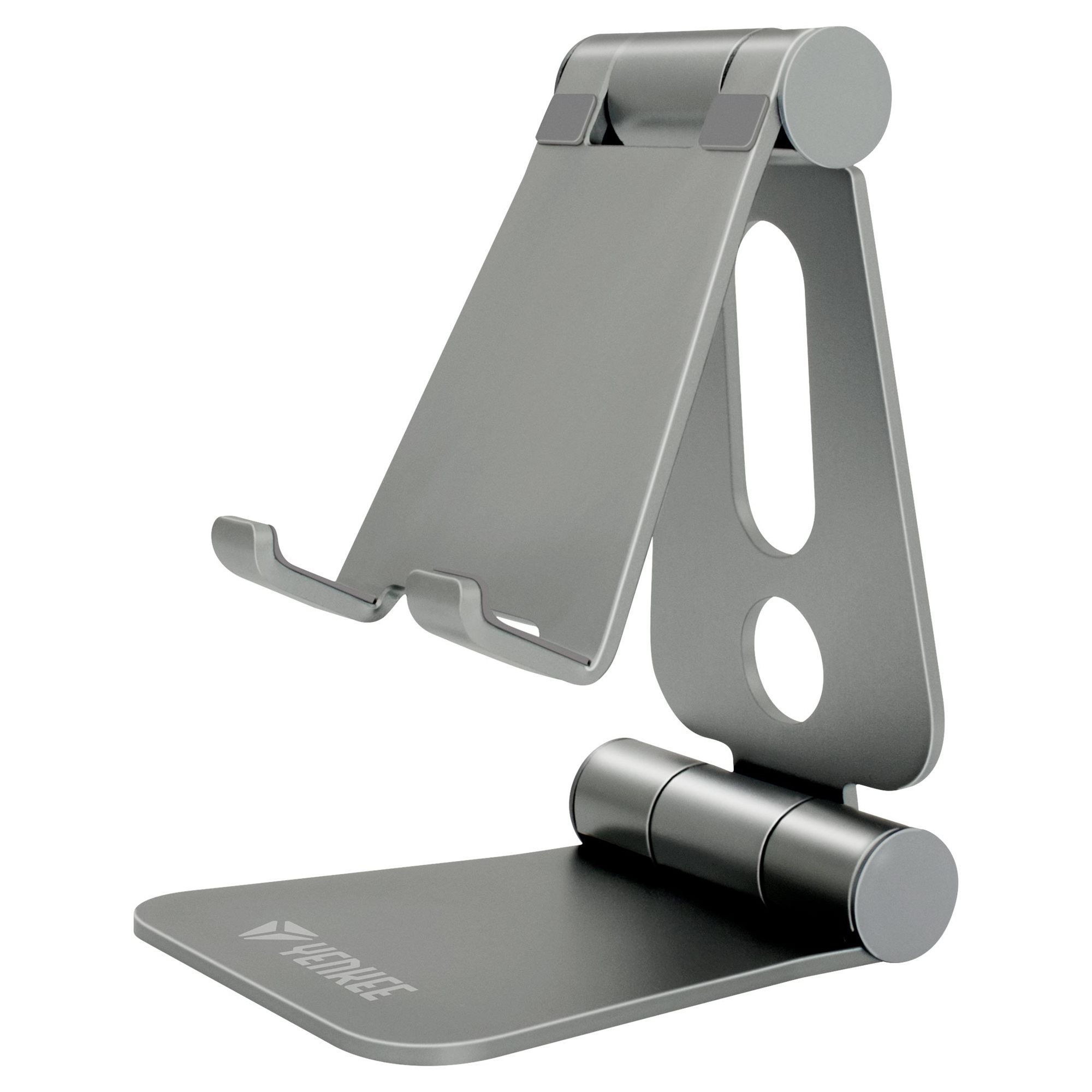 Niezawodnie trzymam telefony i tablety do przekątnej 7“. Jestem wykonany ze stopu aluminium, co zapewnia mi wyjątkową trwałość i stabilność.