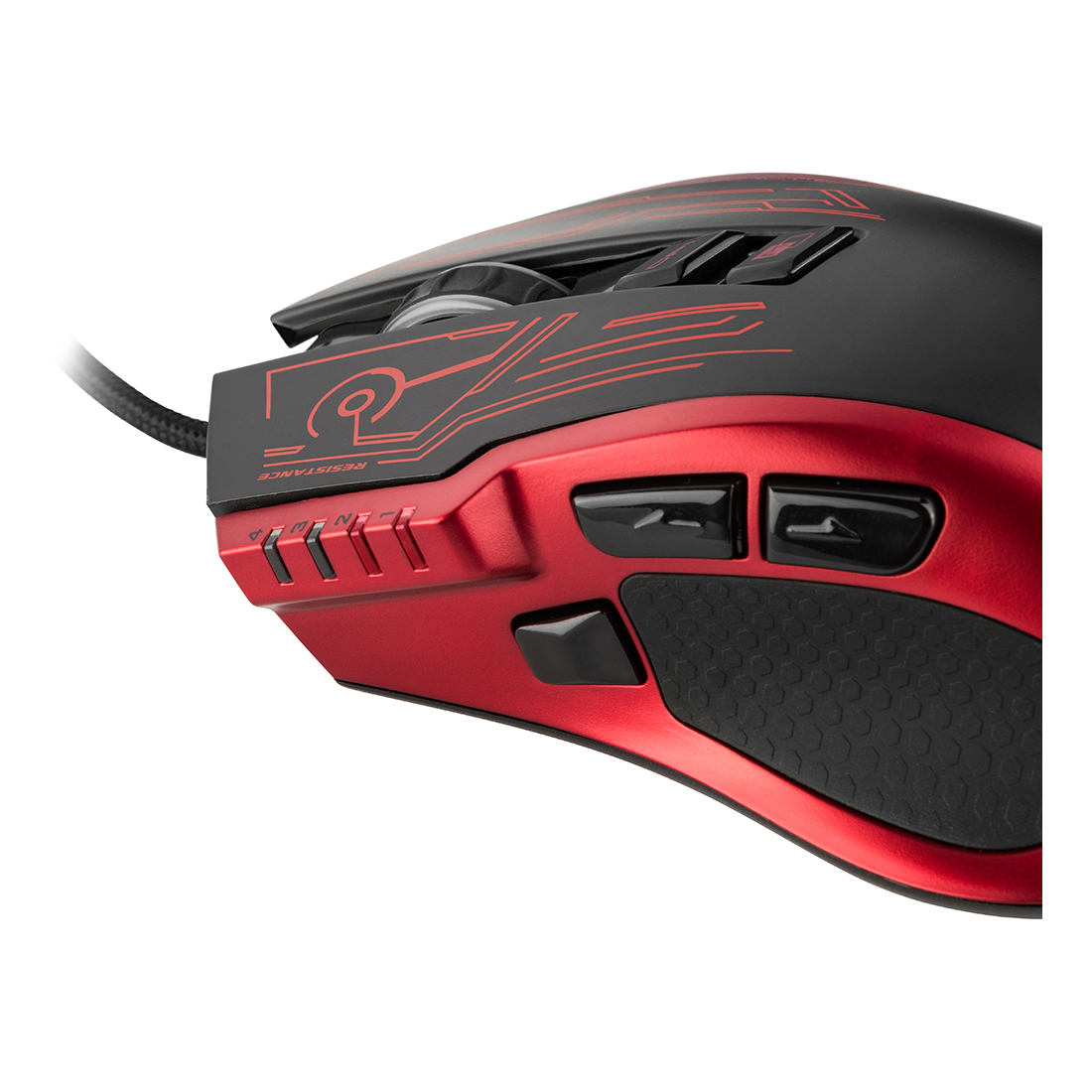 Zaatakuj swych wrogów i zdobądź ich bazy przy pomocy 8-przyciskowej, programowalnej myszy do gier. Ustaw mysz tak, aby odpowiadała Twoim wymaganiom. Dzięki załączonemu oprogramowaniu możesz ustawić dowolny kolor podświetlenia, tworzyć makra i programować wszystkich 7 przycisków. Można ustawić częstotliwość próbkowania, czułość, prędkość kursora i dwukliku.