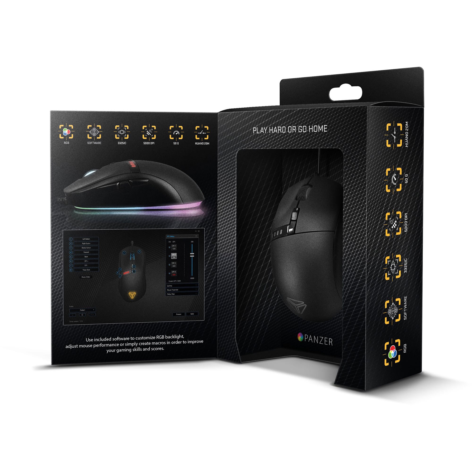 Jestem nową myszą Panzer przeznaczoną dla początkujących i bardziej wymagających graczy. Wiadomo, że myszy do gier stawia się większe wymagania, dlatego mój korpus ma solidną konstrukcję, dzięki której zagwarantowane jest stuprocentowe funkcjonowanie w każdych okolicznościach. Wszystko to w ergonomicznym korpusie zaprojektowanym symetrycznie dla jakiegokolwiek uchwycenia myszy.