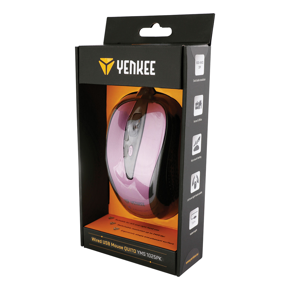 Mysz przewodowa z 4 przyciskami i przełączalną rozdzielczością do 2400 DPI do operatywnego i płynnego sterowania kursorem, precyzyjnego śledzenia ruchu i łatwego zaznaczania tekstu.
