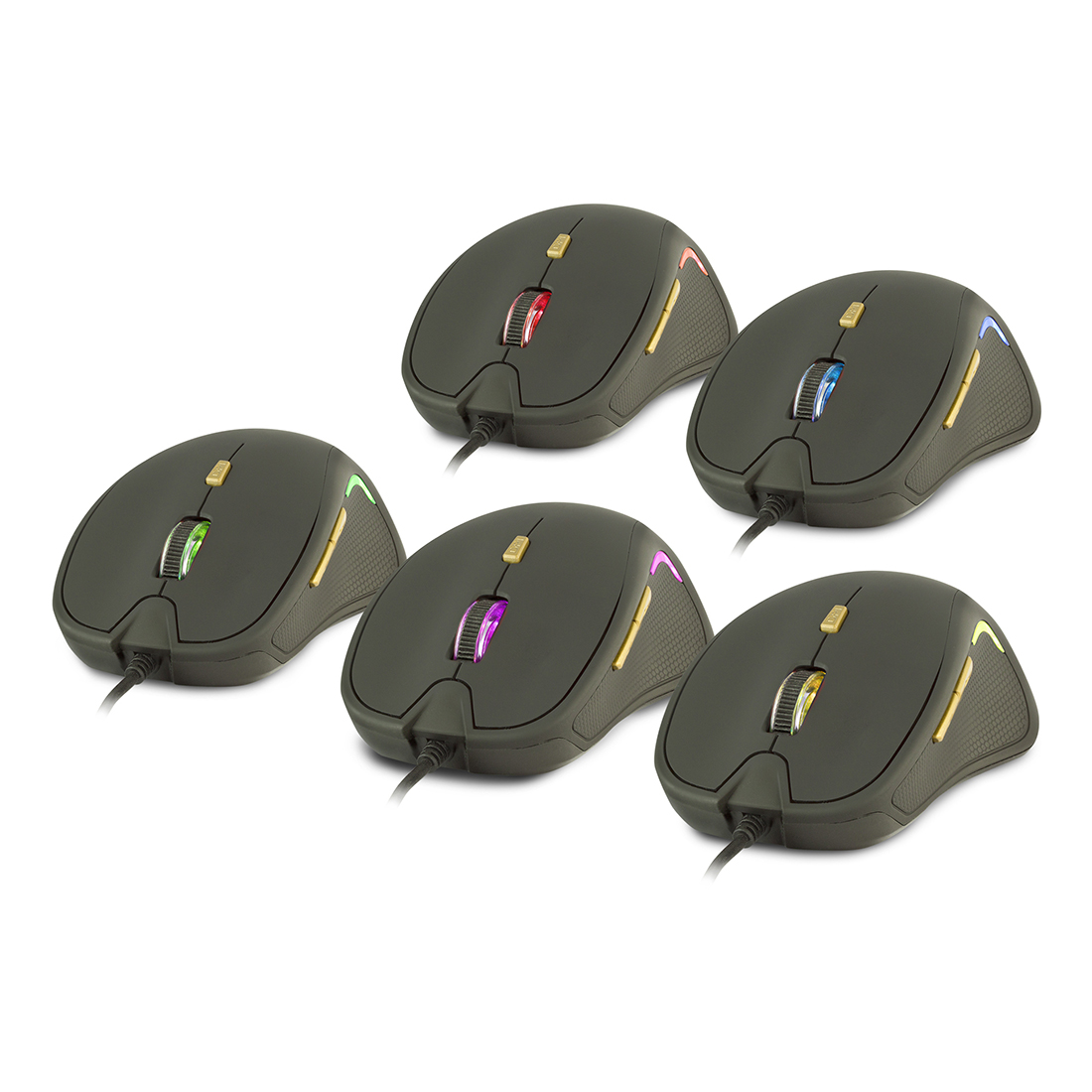 Stylowe podświetlenie w wielu kolorach jest umieszczone po obu stronach myszy.