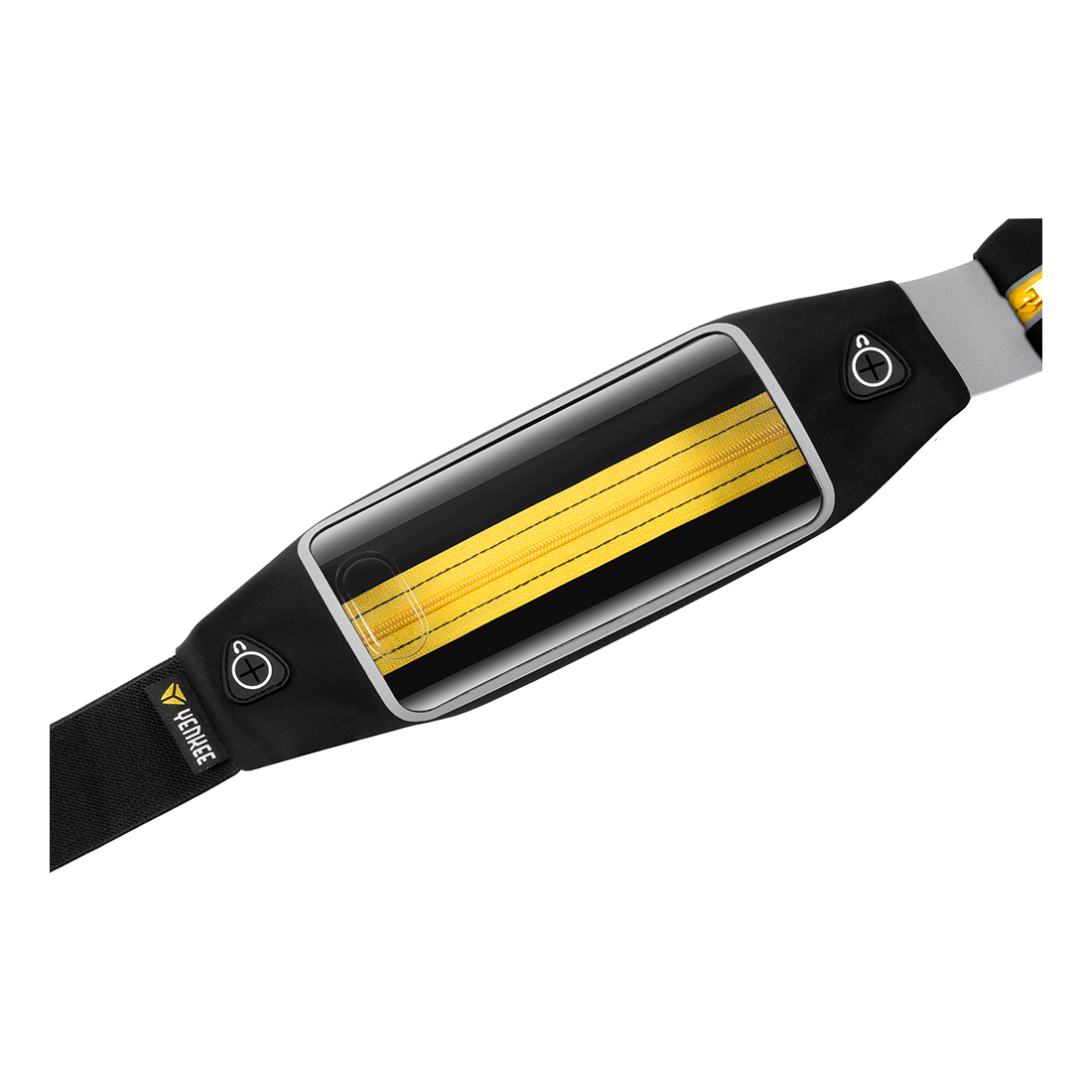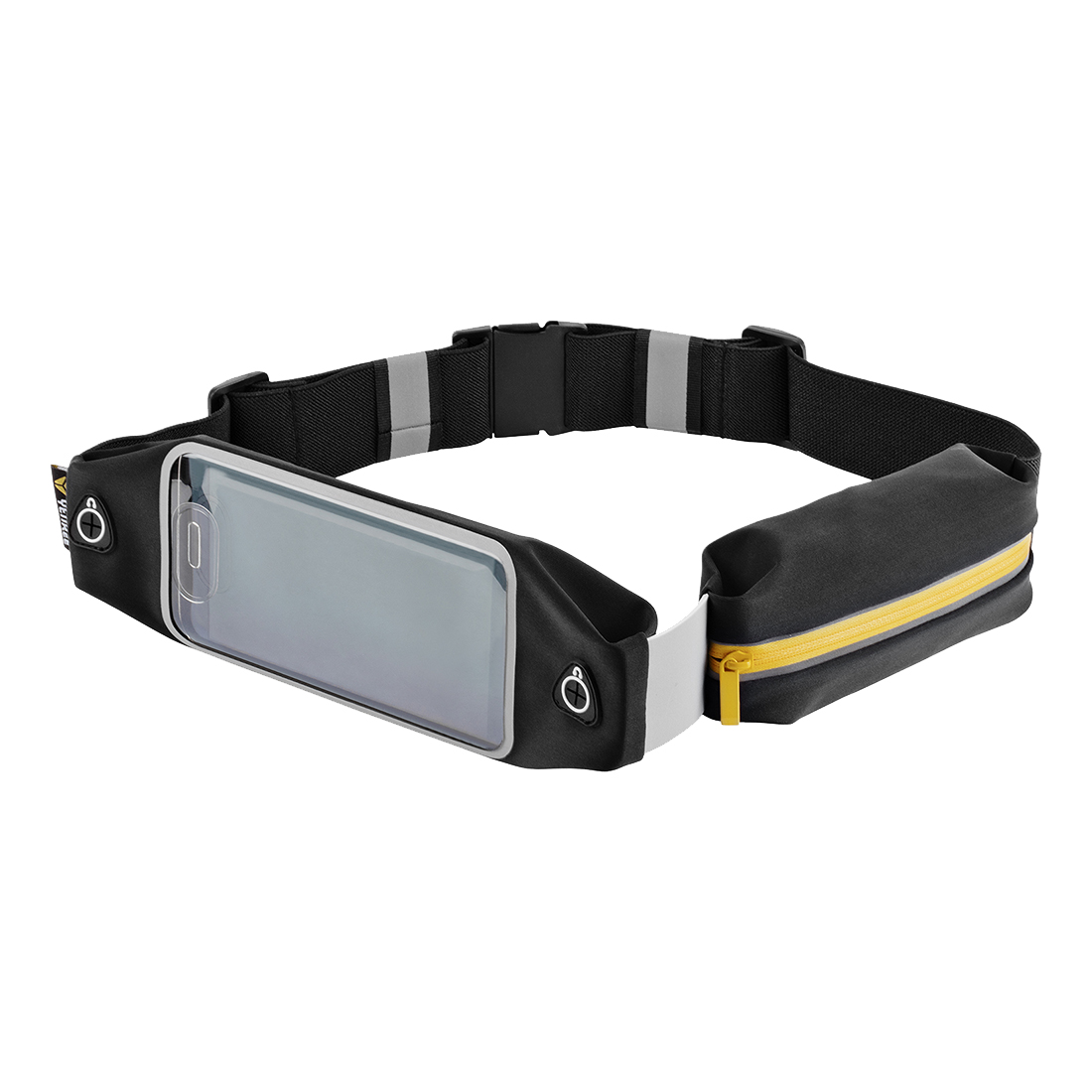 Saszetka biodrowa do biegania klasy premium, z opcją odblokowania odciskiem palca, odblaskami zwiększającymi bezpieczeństwo i dodatkową kieszonką na małe przedmioty. Wysokiej jakości materiały chronią Twój telefon przed potem i czynnikami atmosferycznymi. Wycięcia na kabel słuchawkowy umieszczono z lewej i prawej strony saszetki tak, aby pasowały do najpopularniejszych marek i modeli telefonów.