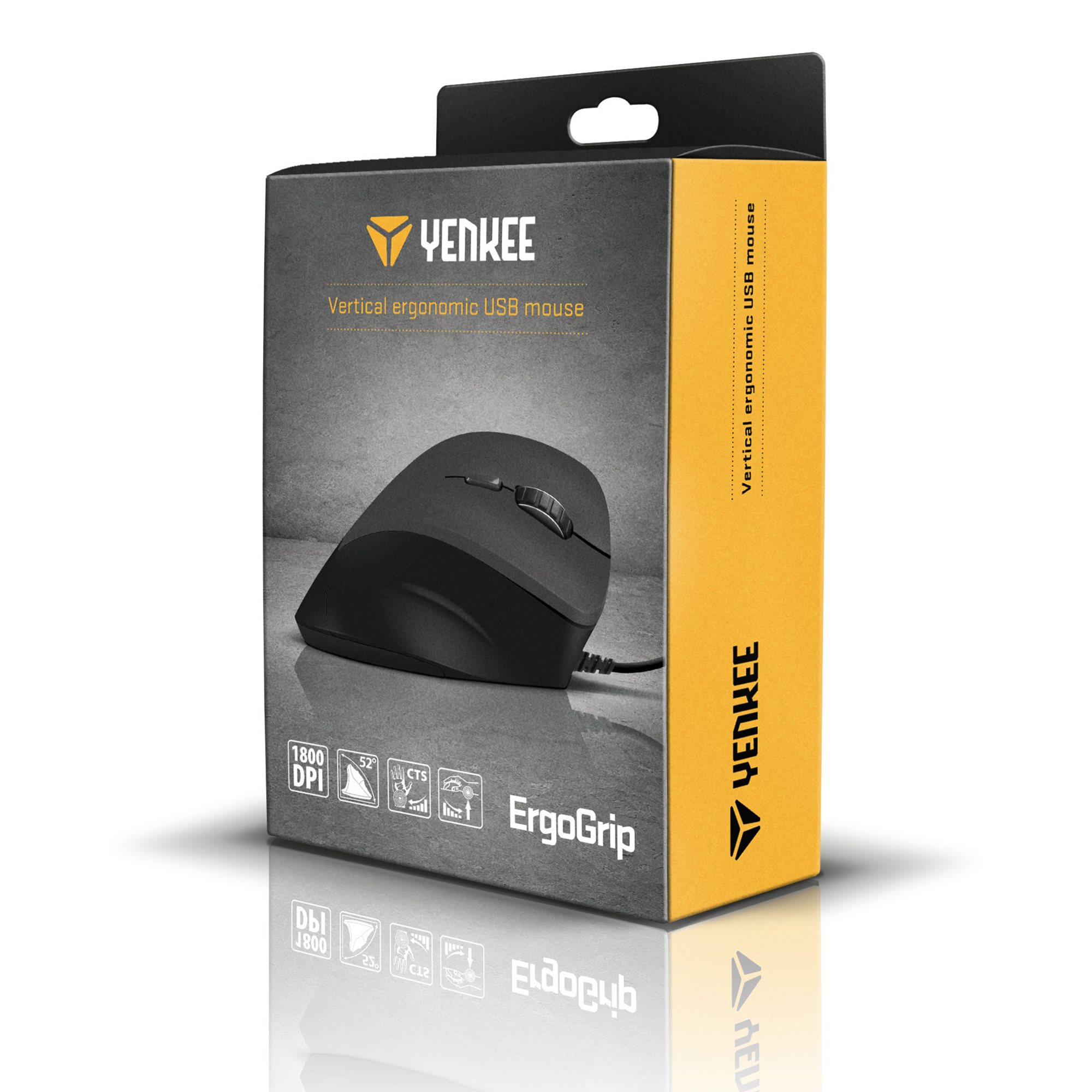 Jestem ErgoGrip - mysz przewodowa YMS 5010. Dzięki swojemu wykonaniu świetnie pasuję do ręki. Jestem gwarancją tego, że nawet praca przy komputerze może być przyjemna. Już nigdy nie będziesz musieć ograniczać tempa pracy ze względu na ból nadgarstków lub ramienia. Jestem tak zaprojektowana, aby umożliwić naturalną pozycję nadgarstka i zmniejszyć ryzyko zespołu cieśni kanału nadgarstka i innych schorzeń związanych z codziennym używaniem „zwykłych” myszy komputerowych. Kąt i wysokość wybrano tak, aby nadgarstek znajdował się w najwygodniejszej pozycji.