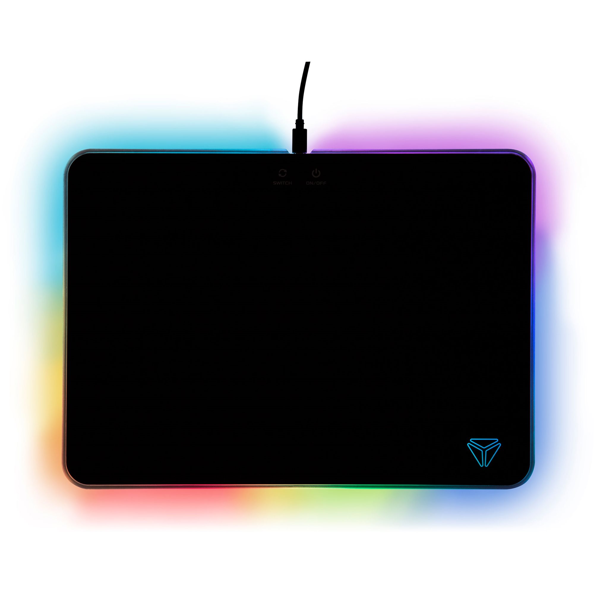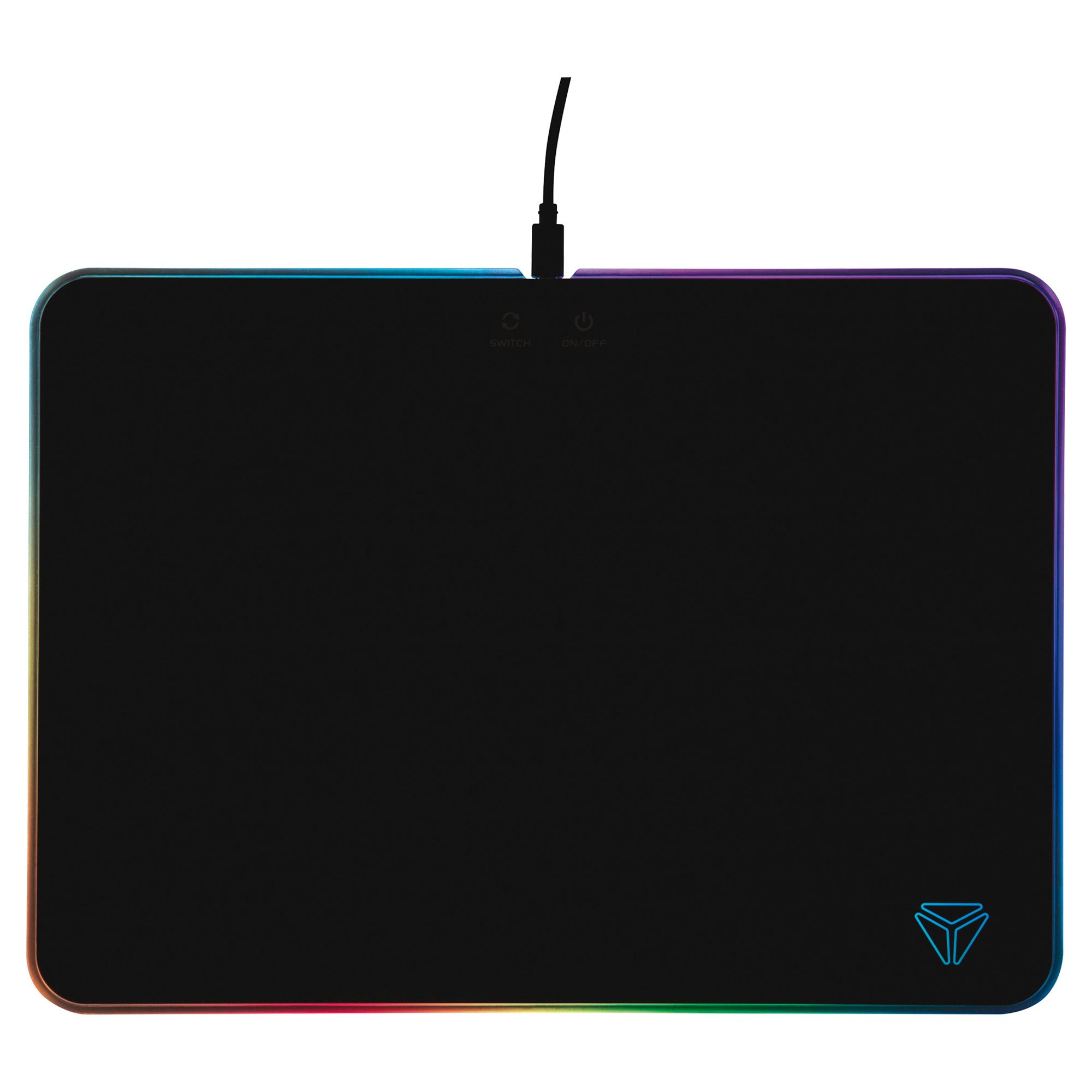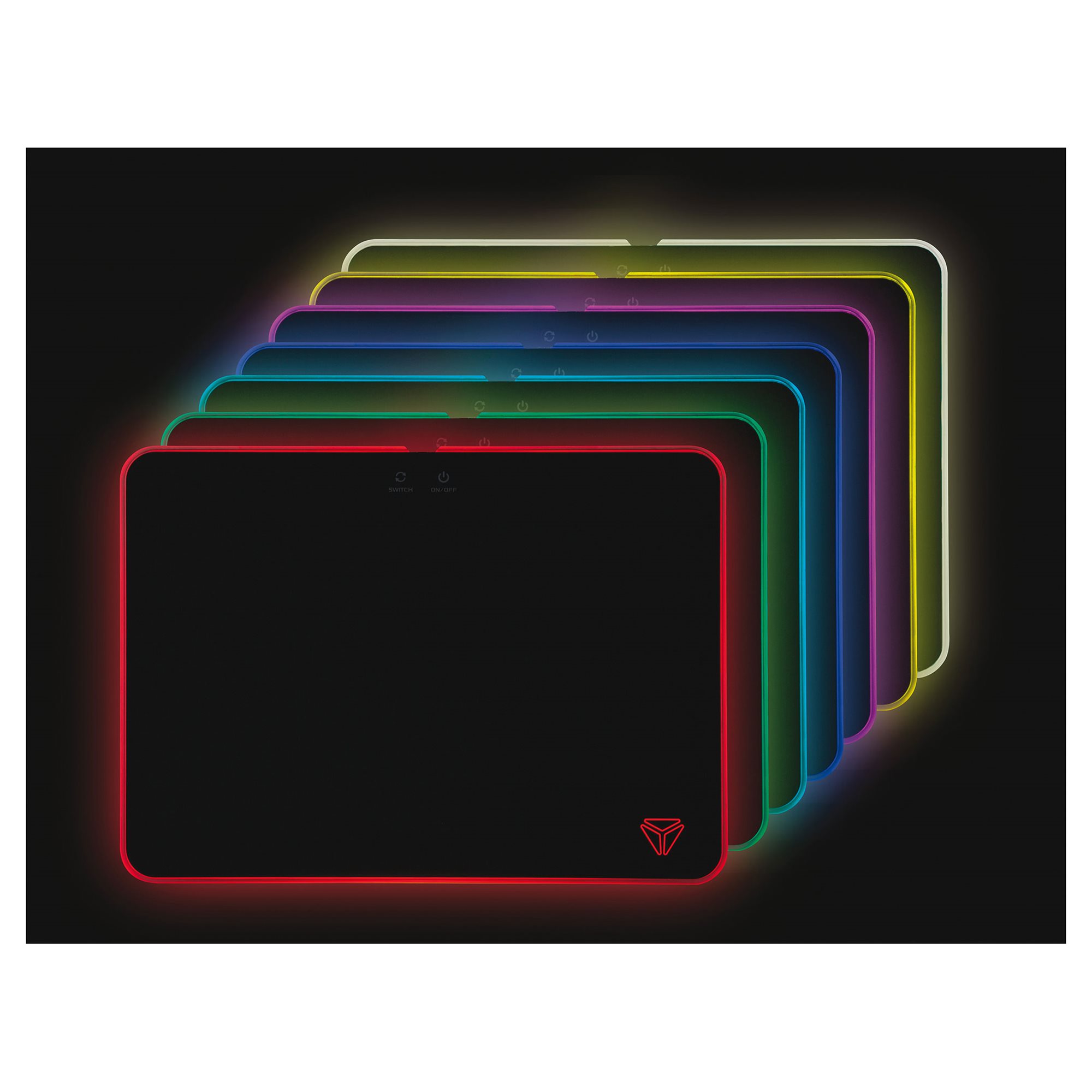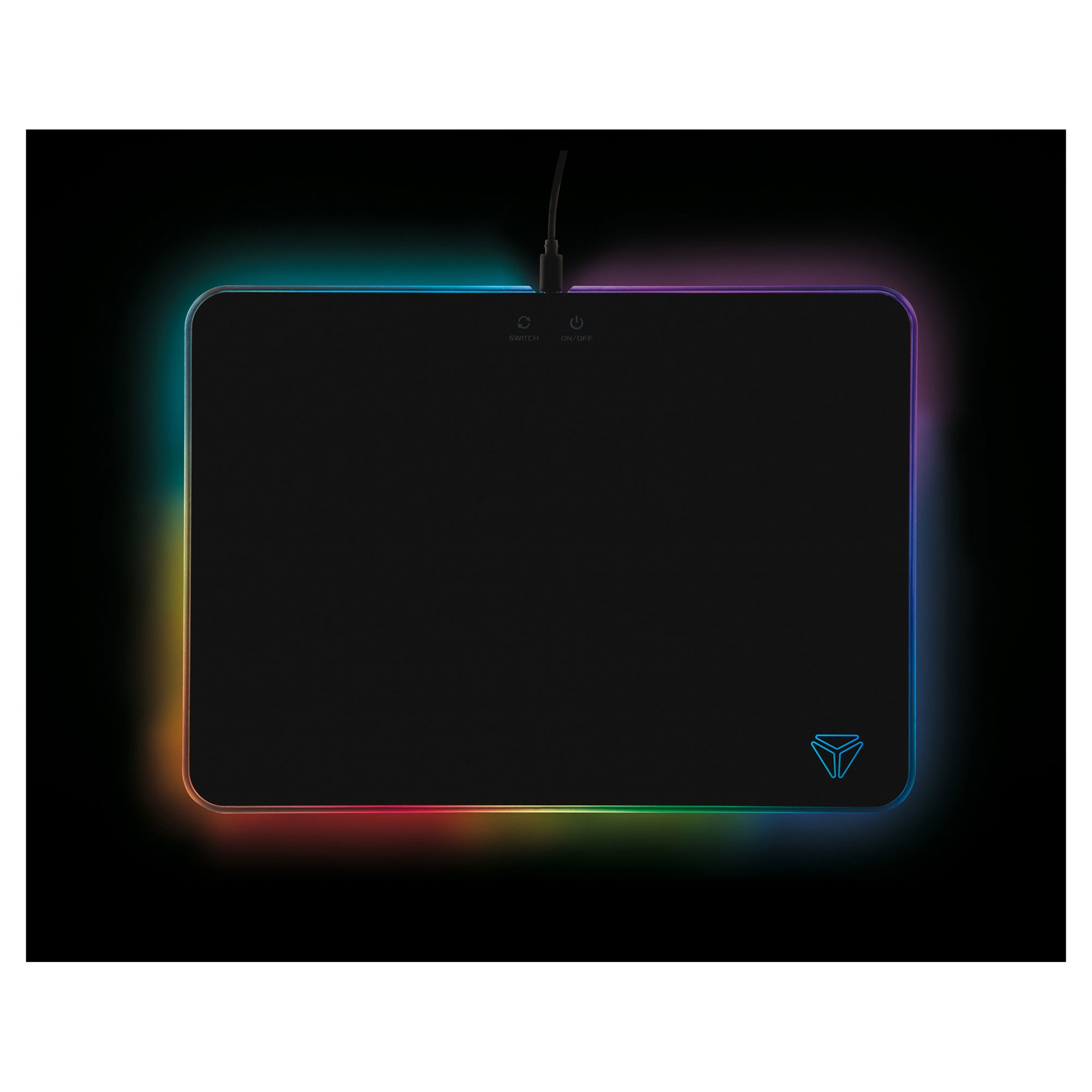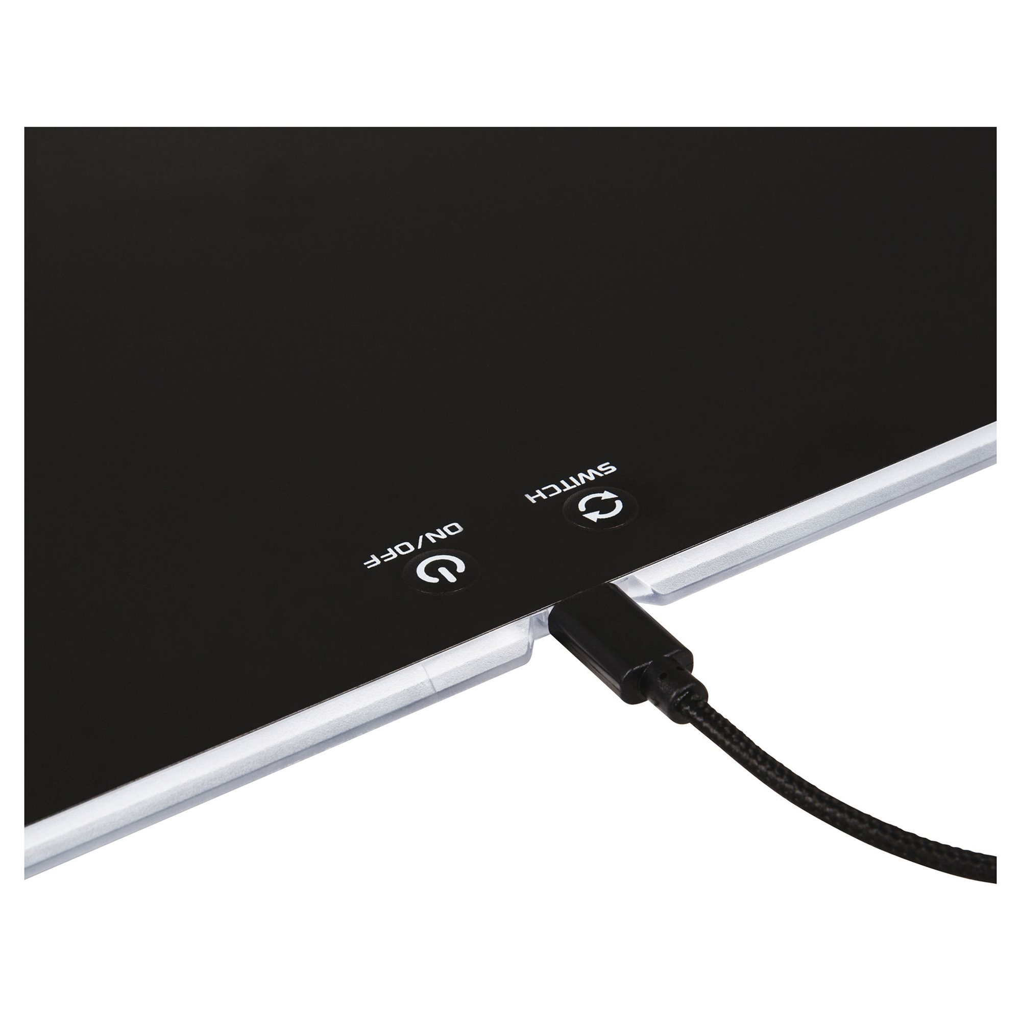 Regulator podświetlenia jest łatwo dostępny i znajduje się na tym samym poziomie co powierzchnia podkładki, nie zmniejszając przestrzeni do gry i nie ograniczając ruchu myszy.