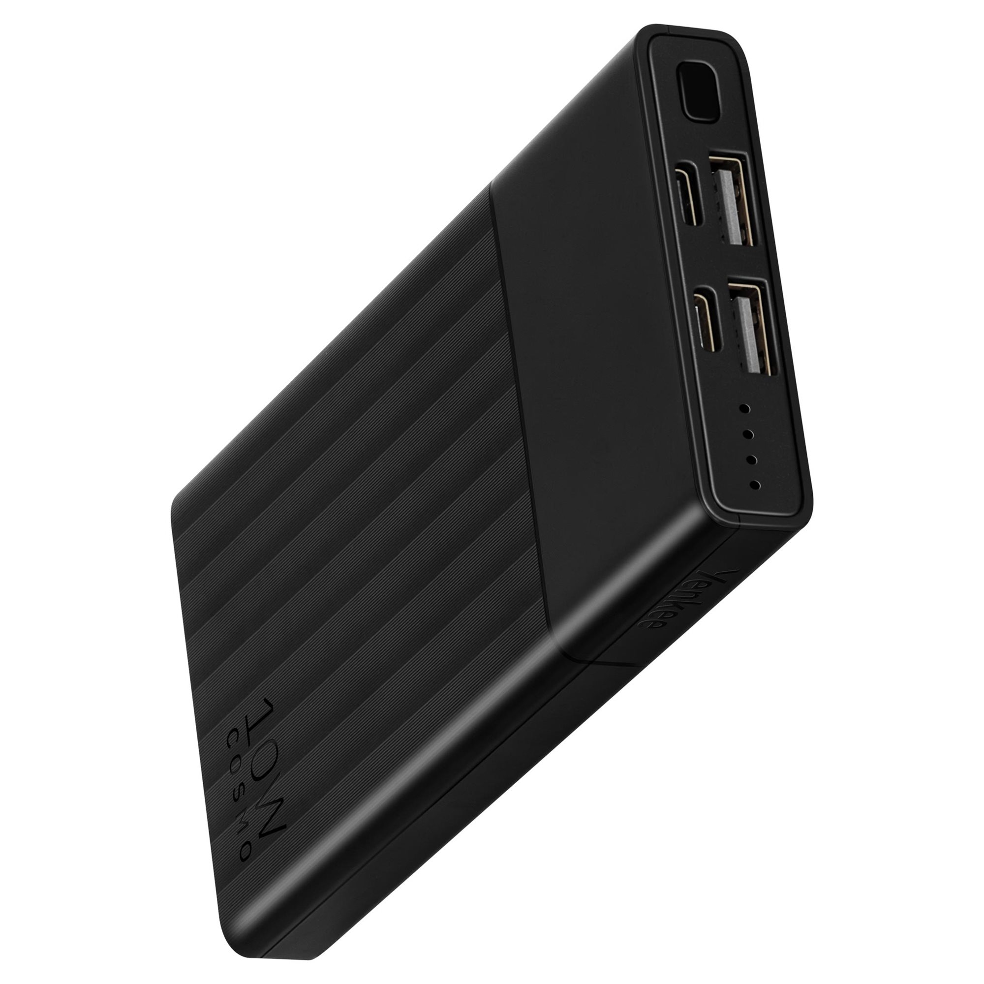 Kompaktowy power bank o pojemności 10 000mAh, wyposażony w dwa wyjścia USB z prądem ładowania 2A przeznaczony do ładowania smartfonów.