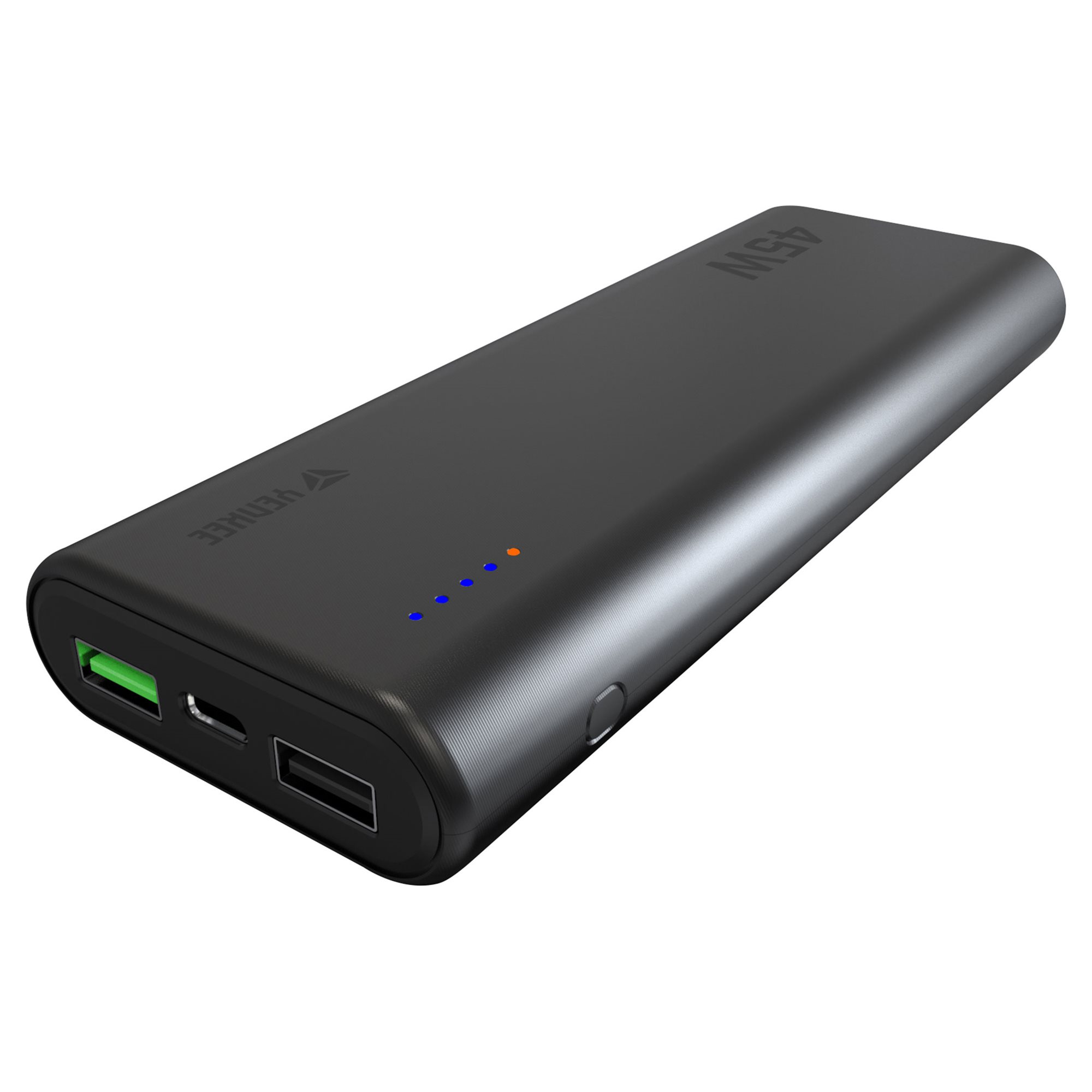 Właśnie tak. Jestem wyposażony w power delivery o mocy 45 W, co wystarczy, by z łatwością zasilać Twój laptop. Do ładowanie należy jednak użyć kabla USB C dobrej jakości, który poradzi sobie z taką mocą. Power Delivery działa ponadto obustronnie, więc naładujesz mnie w ciągu zaledwie 3 godzin.