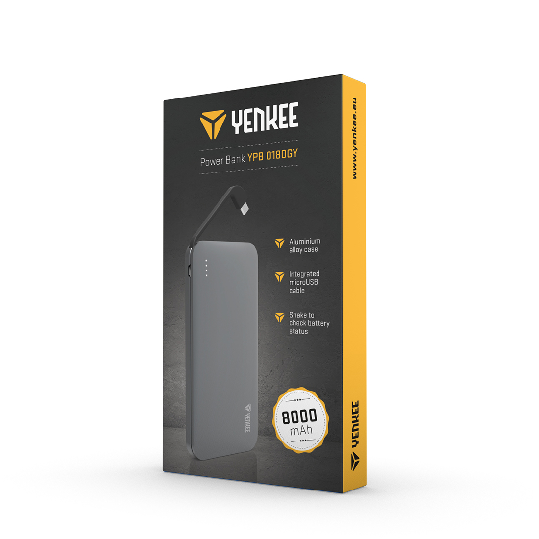 Przenośny Power Bank o pojemności 8000 mAh, który może ładować jednocześnie 2 urządzenia. Przeznaczony do telefonów komórkowych, tabletów i wielu innych urządzeń wymagających 5 V DC źródła energii USB.