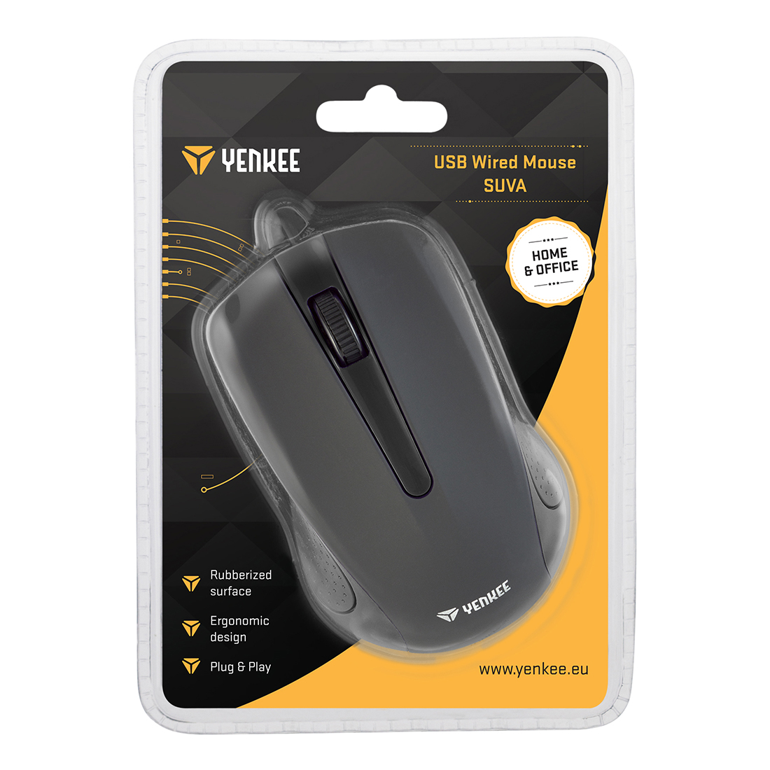 Przewodowa mysz z 3 przyciskami o rozdzielczości optycznej 1000 DPI. Do użytku w domu i w biurze.