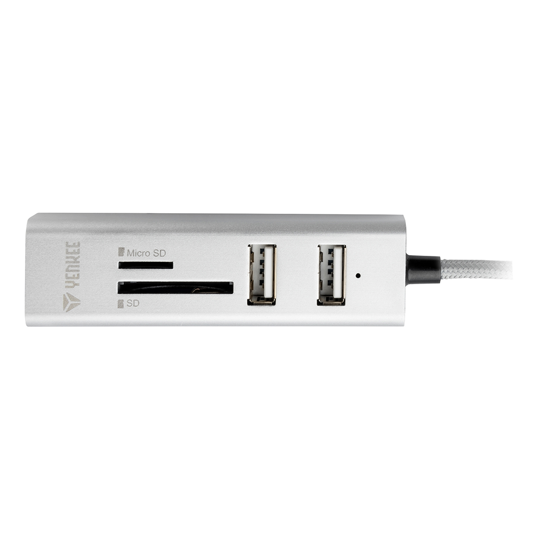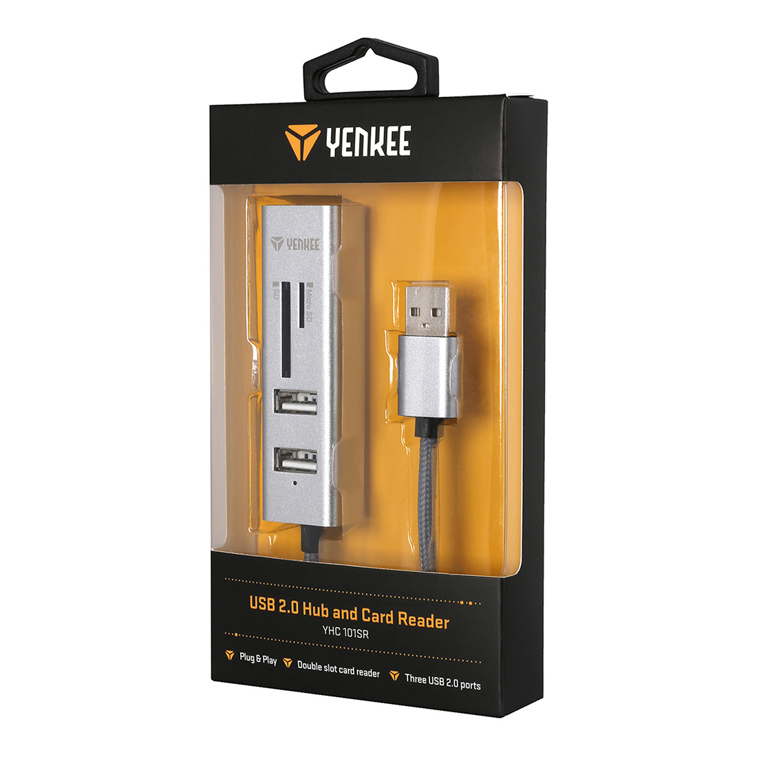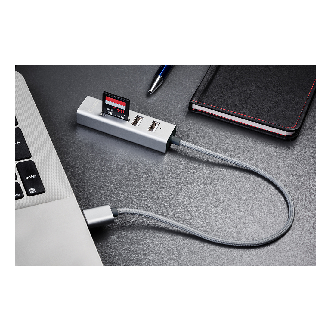 Stylowy adapter USB 2.0 łączący rozdzielnik USB z czytnikiem kart. Rozszerzy twój komputer o trzy dodatkowe porty USB do podłączenia urządzeń zewnętrznych, takich jak mysz, klawiatura, telefony, zewnętrzny dysk twardy, urządzenia flash itp. Czytnik kart z dwoma slotami obsługuje automatyczne rozpoznanie karty i jest zgodny z większością ulubionych formatów kart pamięci.