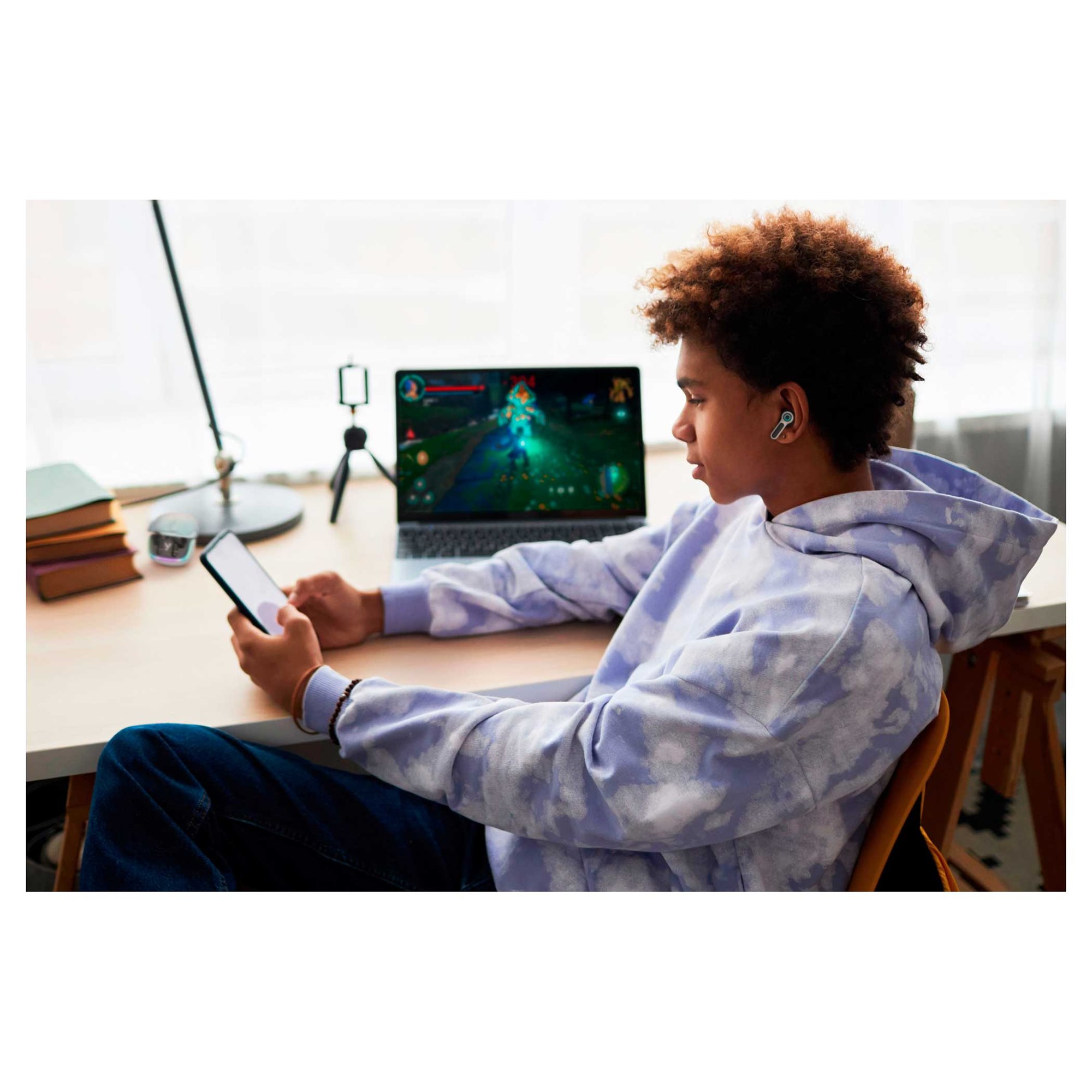 Słuchawki EVEPLAY są wyposażone w funkcję redukcji hałasu z otoczenia (ENC), która eliminuje zakłócające dźwięki z otoczenia i wzmacnia głos podczas rozmów telefonicznych. Tryb gry o niskiej latencji zapewnia szybką reakcję, co jest kluczowe dla wciągających doświadczeń z gier, podczas gdy tryb muzyczny oferuje bogaty i zrównoważony dźwięk do codziennego słuchania. Z całkowitym czasem odtwarzania do 26 godzin będziesz mieć wystarczająco dużo energii na długie wieczory z grami.