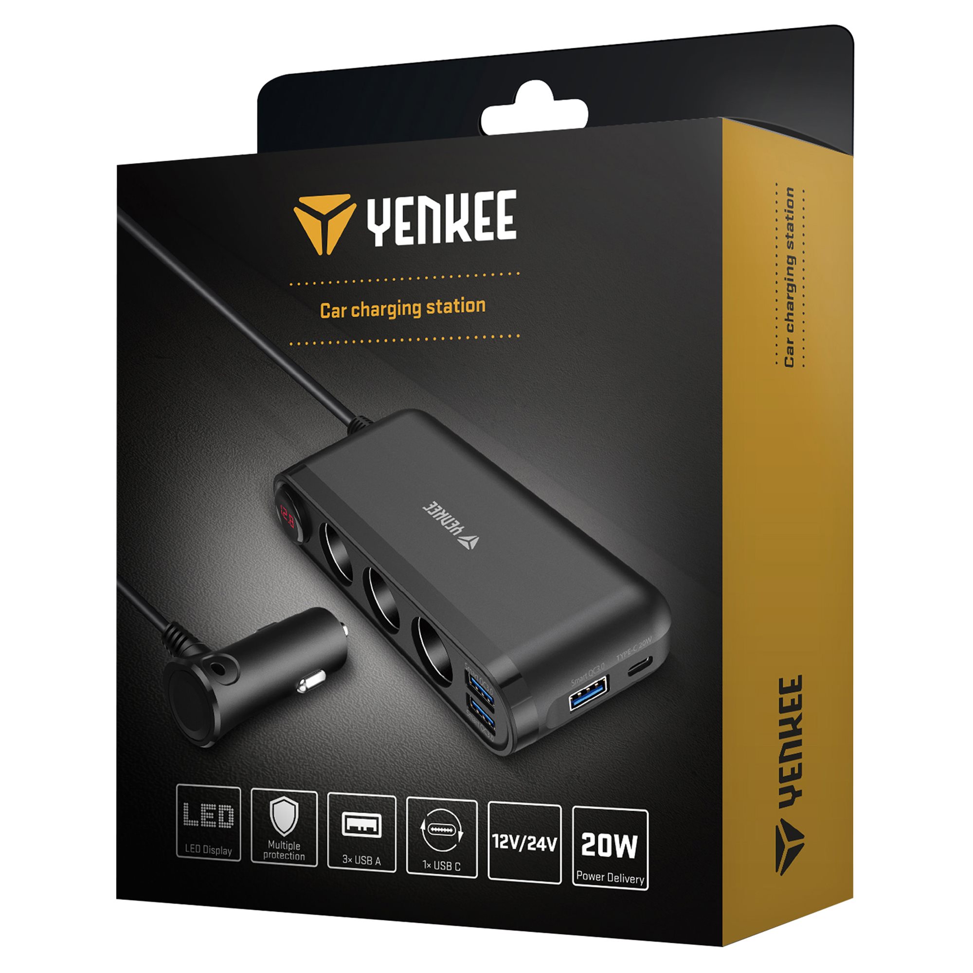 Wydajna stacja ładująca może ładować do siedmiu urządzeń jednocześnie. Posiada trzy porty USB-A, jeden port USB-C oraz trzy wyjścia 12V.