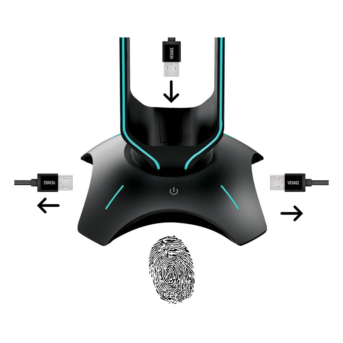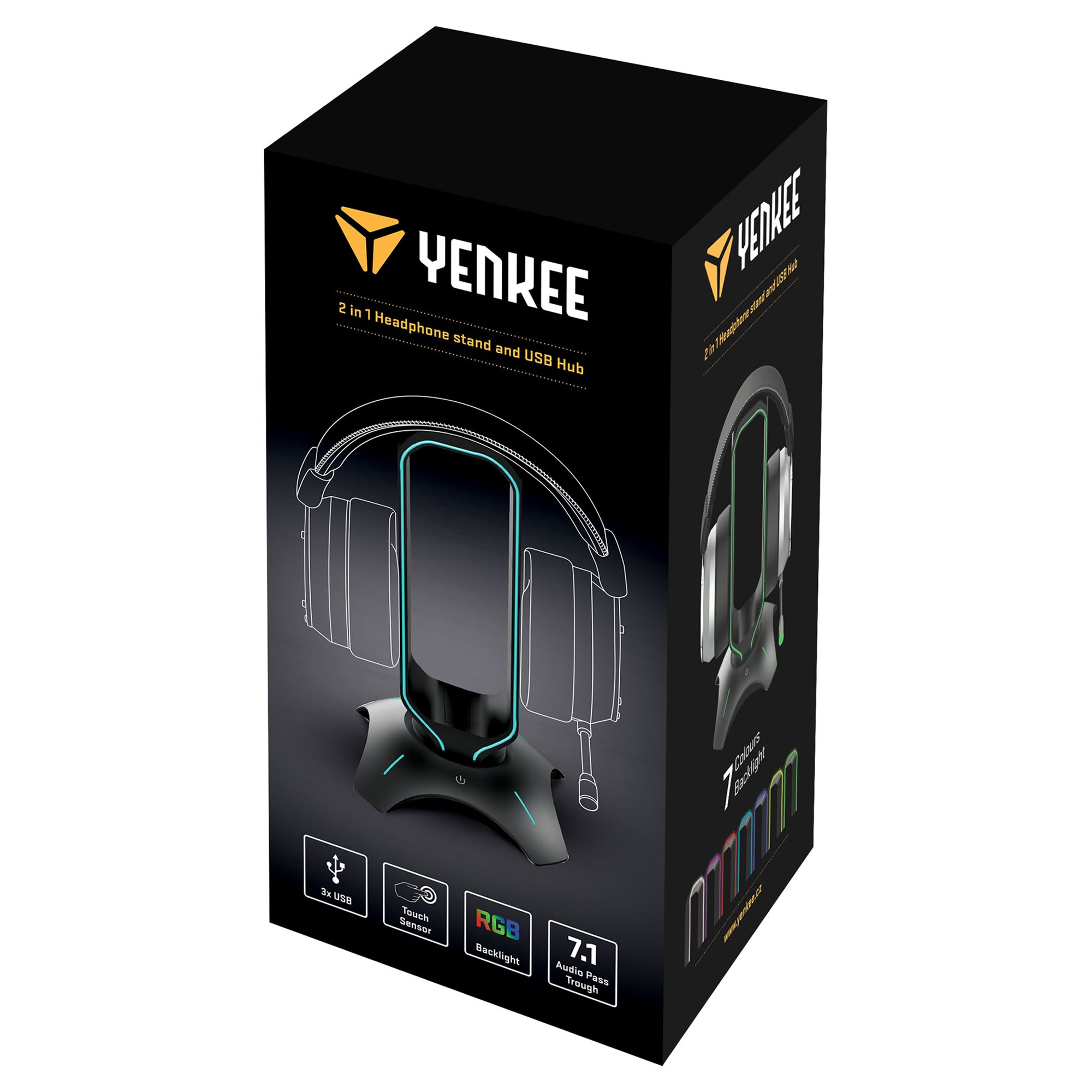 Jestem Tower, wyjątkowe wyposażenie do gier, którego nie może zabraknąć na twoim stole. Dzięki mojemu uchwytowi, od którego pochodzi moja nazwa, możesz na mnie odłożyć headset, który po długim dniu pełnym trudnych bitw zasługuje na solidny odpoczynek. Poza tym potrafię rozszerzyć zasoby złącz USB o dodatkowe dwa. A jeśli masz słuchawki 7.1 USB, umilę ci życie 7.1-kanałowym pass through.