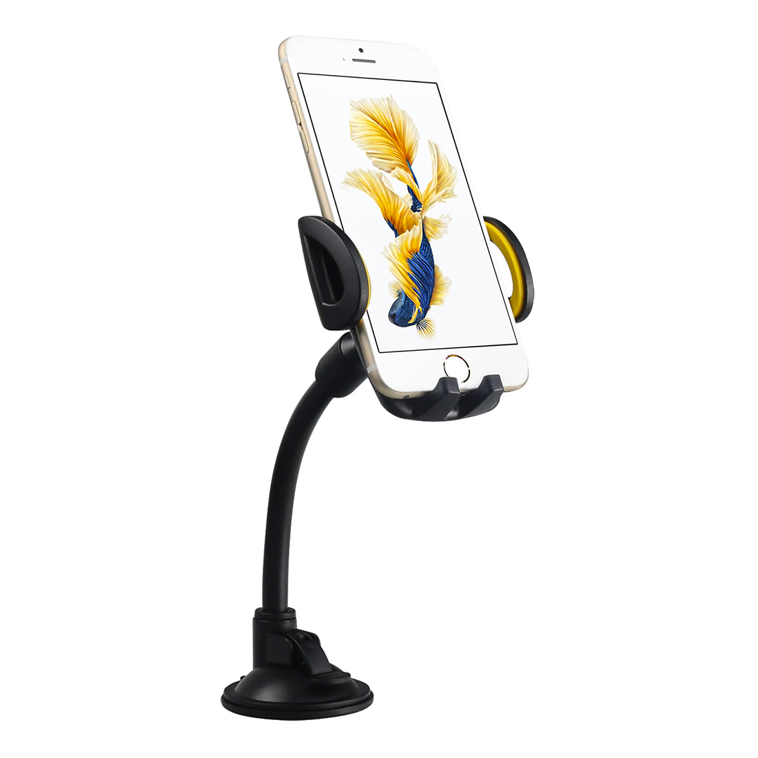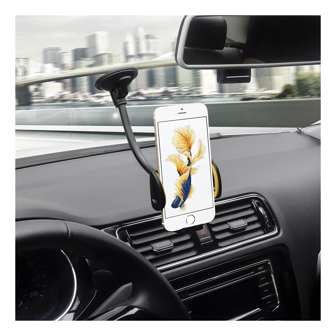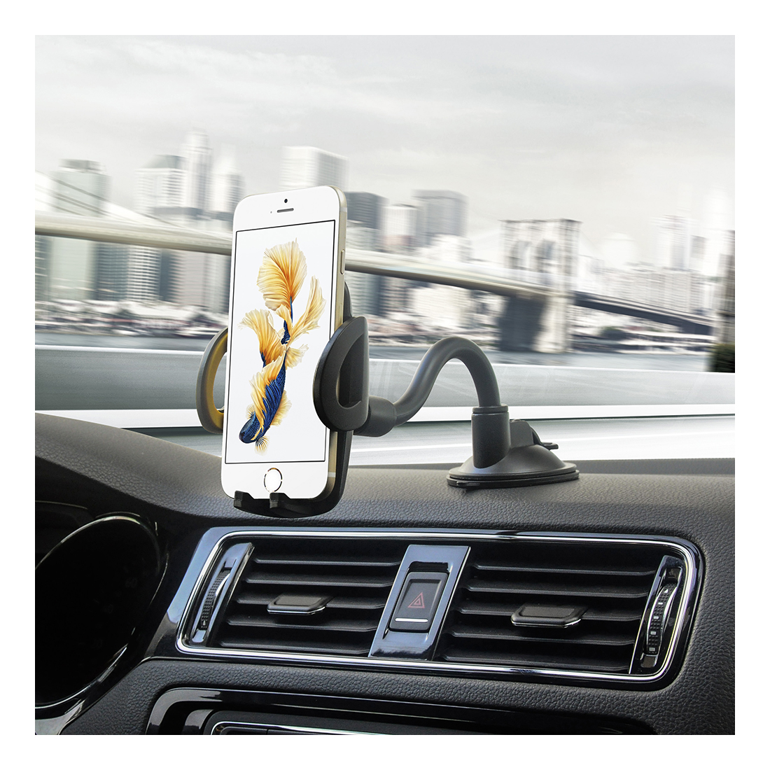 Uniwersalny uchwyt samochodowy do przymocowania Twojego telefonu komórkowego na przedniej szybie lub na tablicy rozdzielczej pojazdu. Łatwe ustawianie odpowiedniego kąta optymalnego widoku. Przeznaczony do telefonów do rozmiaru 6". Zaprojektowany z myślą o obsłudze jedną ręką.