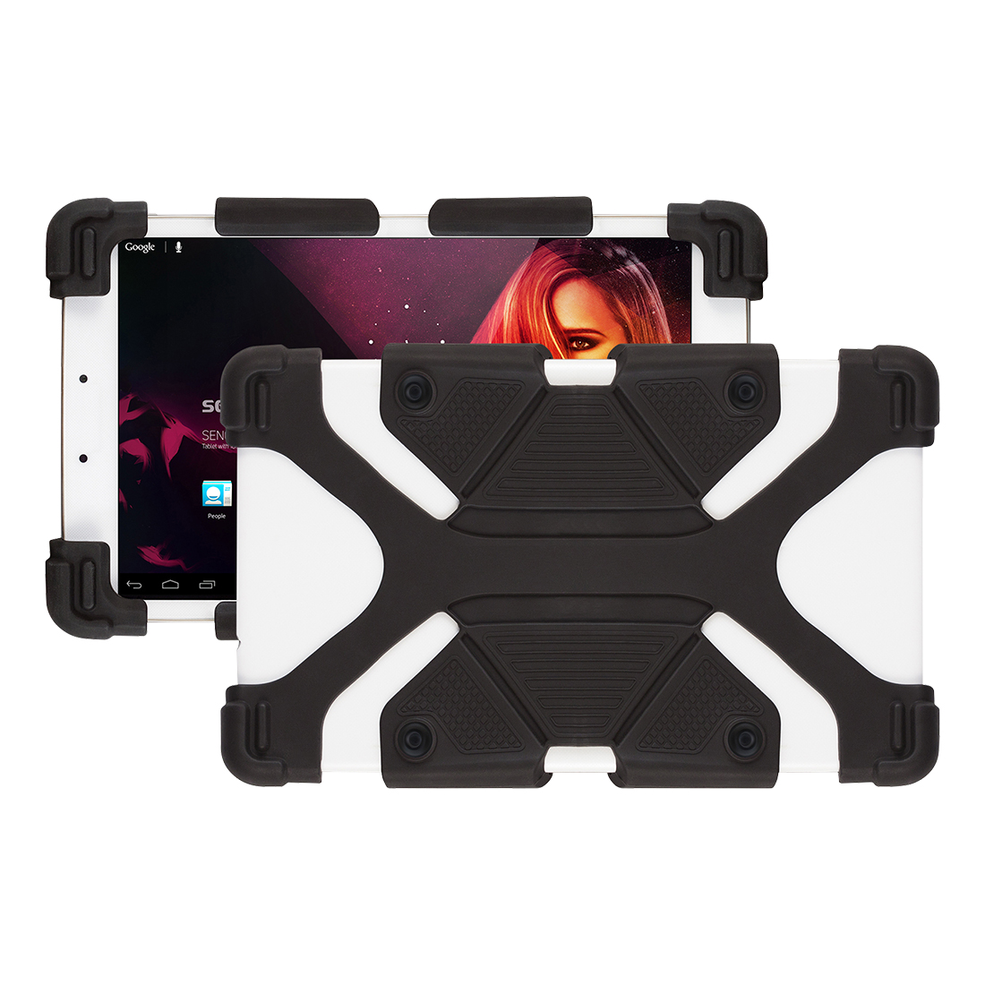 Uniwersalny wstrząsoodporny pokrowiec na tablet wyprodukowany z elastycznego silikonu. Wzmocnione rogi i specjalna konstrukcja ochronią tablet przed nieoczekiwanymi uderzeniami i upadkami. Dzięki specjalnej konstrukcji i ekologicznym materiałom pokrowiec ten jest doskonałą ochroną na tablety używane przez dzieci.