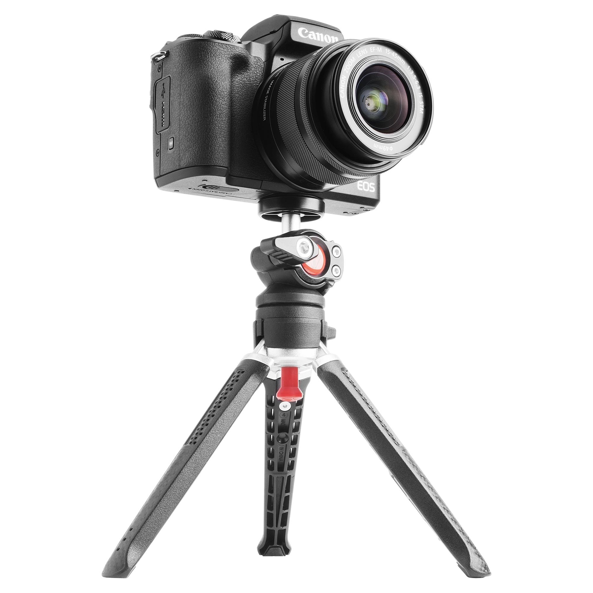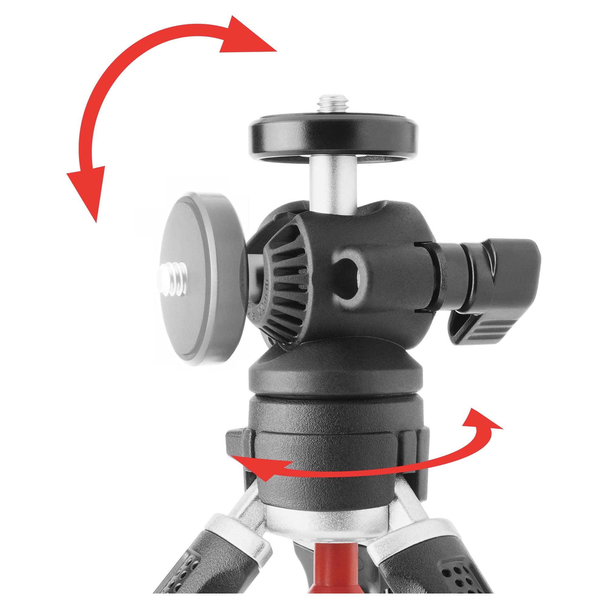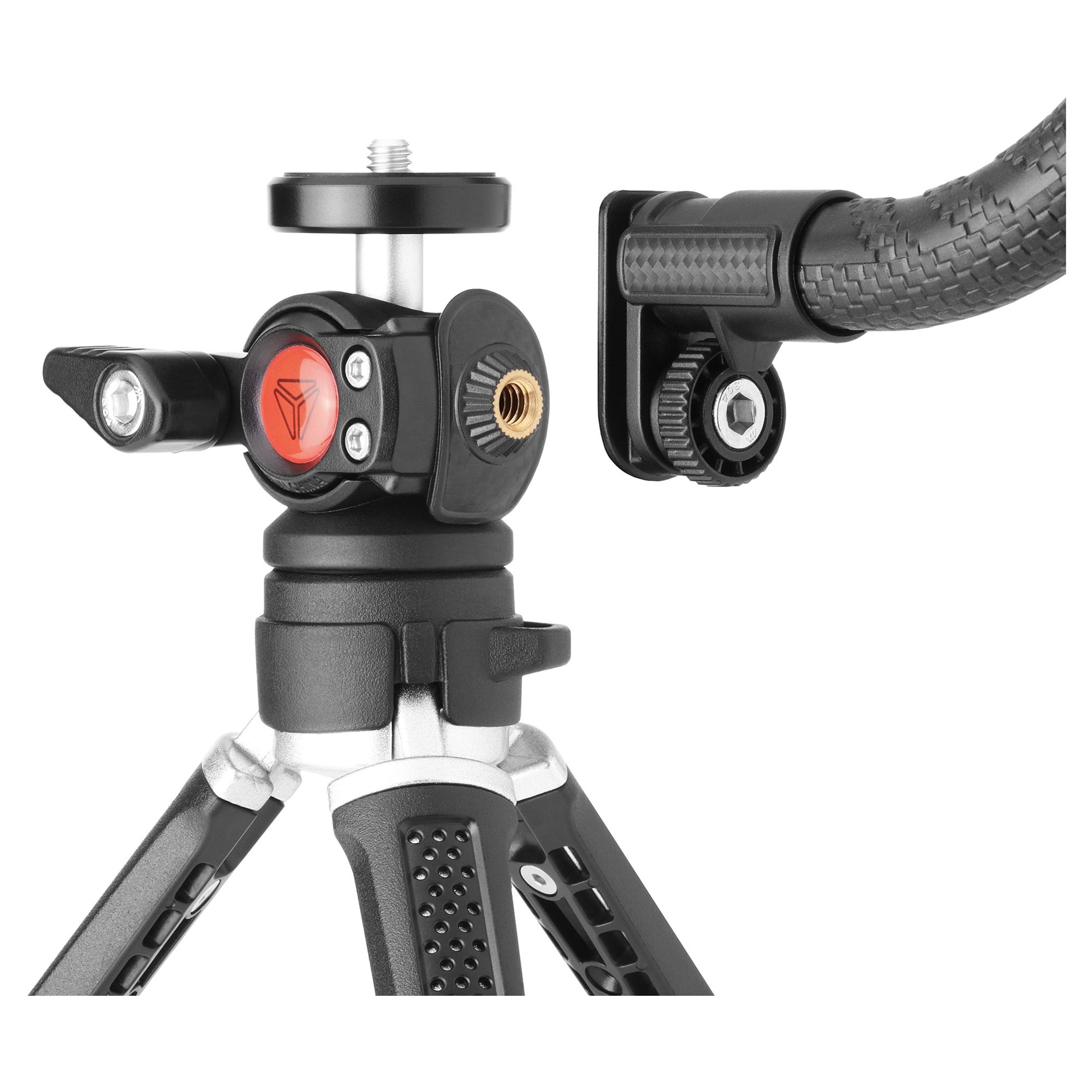 Choć moja konstrukcja wygląda na zgrabną i składaną, w rzeczywistości nie jestem słabeuszem. Połączenie aluminium i plastiku zostało użyte w mojej konstrukcji, aby wesprzeć Cię w każdej sytuacji i okolicznościach. Możesz więc bez problemu przymocować wideoprojektor, kamerę, aparat, stabilizator czy uchwyt na telefon komórkowy do mojego statywu, który oczywiście jest w zestawie, więc nie musisz się o niego martwić. Oprócz mocy, mogę również zaimponować perspektywą widzenia. Dzięki obrotowej głowicy kulowej i elastycznemu ramieniu, uchwycę perspektywę 360° w różnych pozycjach.
