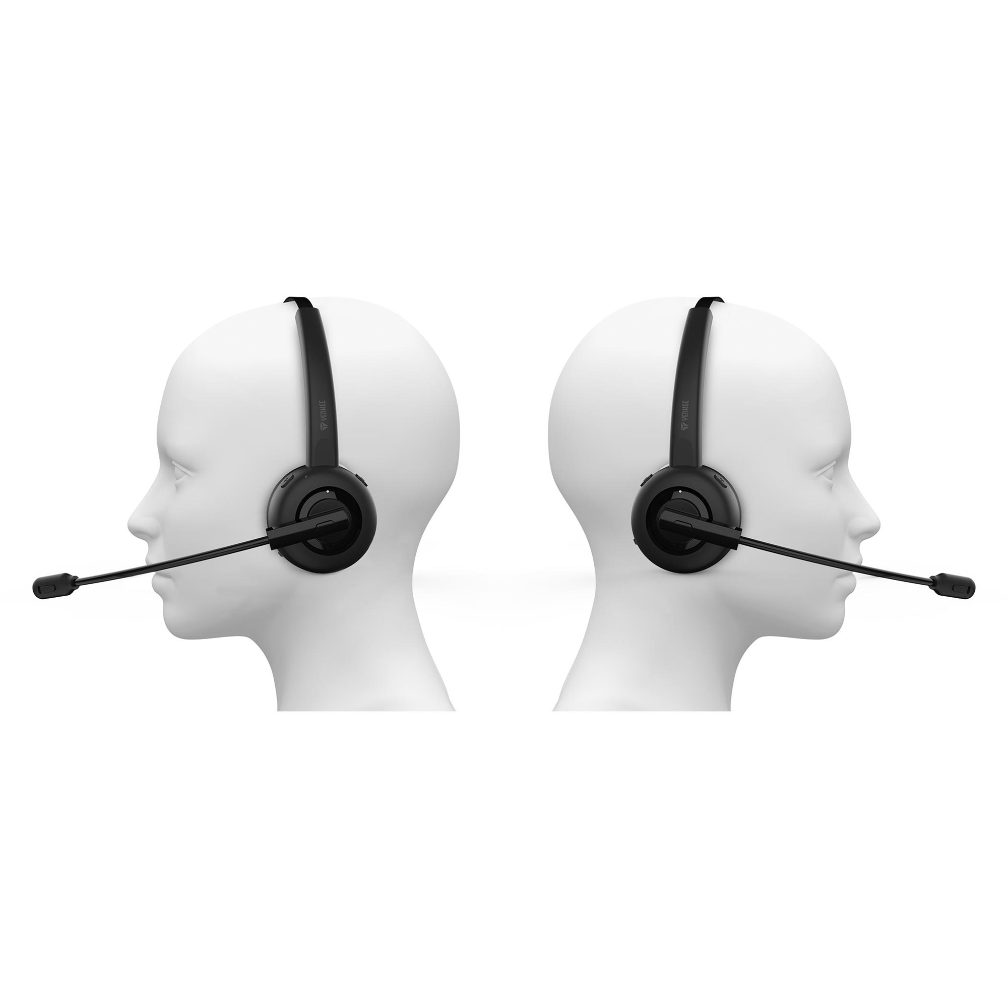 Możesz mnie nosić na którymkolwiek uchu. Mój obrotowy mikrofon współpracuje zarówno z lewym, jak i prawym uchem, a znalezienie idealnego kąta dla optymalnego dźwięku nie stanowi problemu. Skórzane wkładki do uszu są nie tylko na pokaz, ale służą również zmniejszeniu hałasu w pomieszczeniu. Uważam mój uniwersalny przycisk regulacji głośności za coś oczywistego. Do usłyszenia.