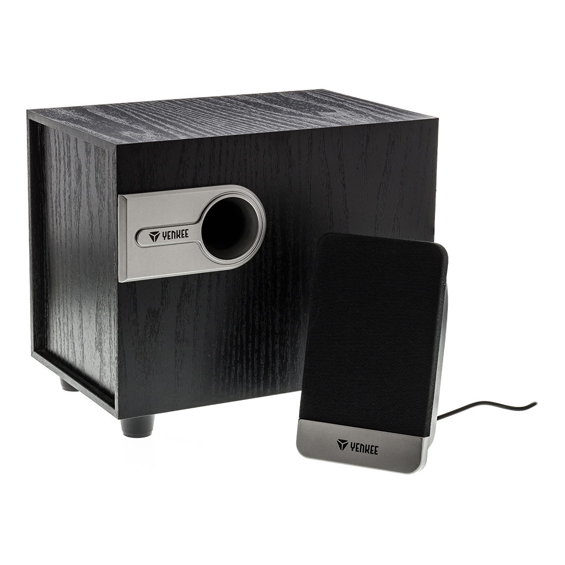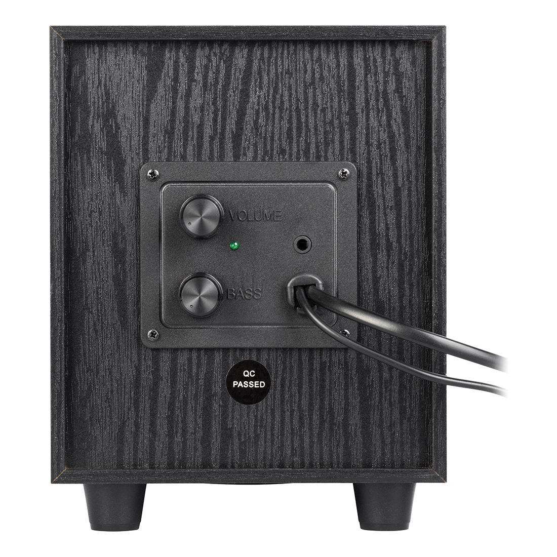 Subwoofer wyprodukowano ze sklejki wysokiej jakości, aby ograniczyć rezonans akustyczny. Port bassreflexu zapewnia dobrze zrównoważone basy, które można również ustawić przy pomocy regulatora z boku subwoofera.